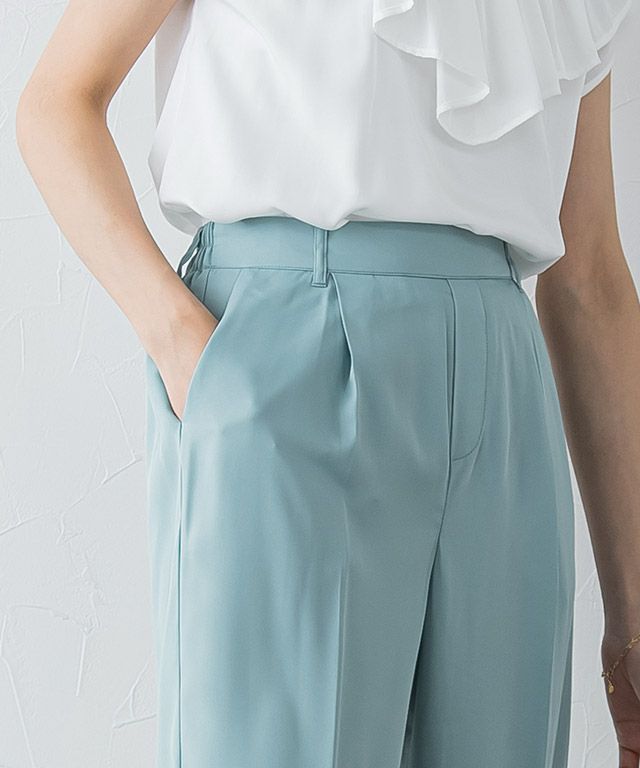 ゆとりのあるワイドデザインで、リラックスした楽な穿き心地のパンツ。ルーズなシルエットでもセンタープレスを入れることできちんと感を演出します。