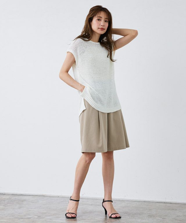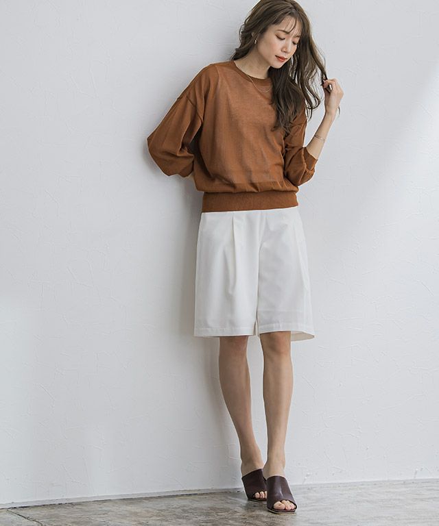 大人のマリンスタイルへ導く“タックハーフマリンパンツ”さらりとした質感と、程良く落ち感のある素材が上品な印象に導きます。マリンディテールのボタンが女性らしさを引き立てるハーフパンツ。深めにとったタックデザインで裾幅にゆとりを持たせることで、脚のラインをさりげなくカバーします。カジュアルさを抑えた長めの丈感が上品で大人っぽく着用できる一枚です。【ブランド】Pierrot(ピエロ)