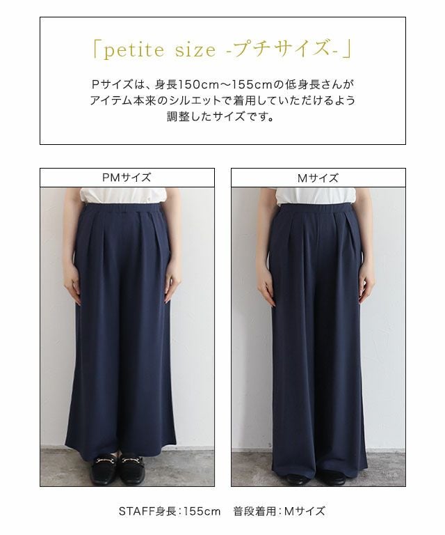 トレンド感あるワイドシルエットで、こなれた印象と体型カバーを両立。両サイドの2タックでよりスッキリ見えし、ゴム仕様のウエストもフロント部分はフラットになっているので、インスタイルもきれいに決まります。トップスを選ばず、ワンマイルなど日常使いにぴったりな一枚です。