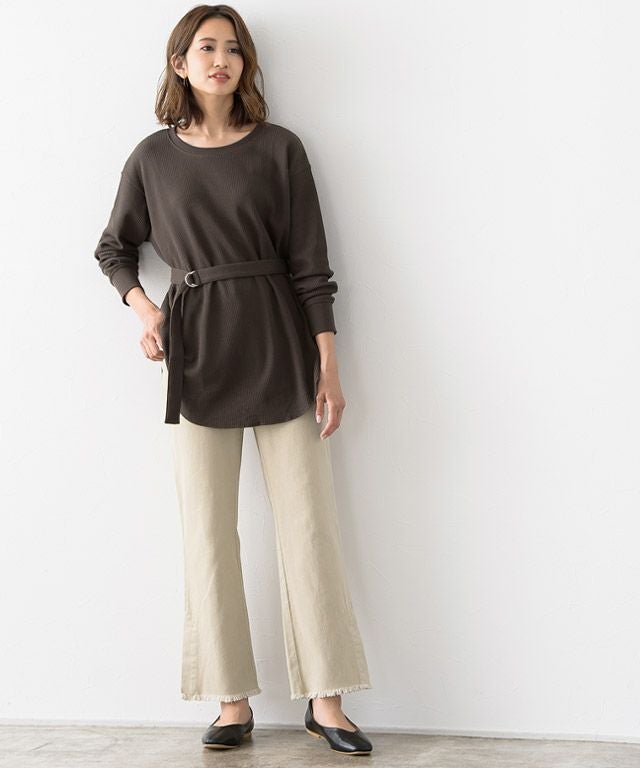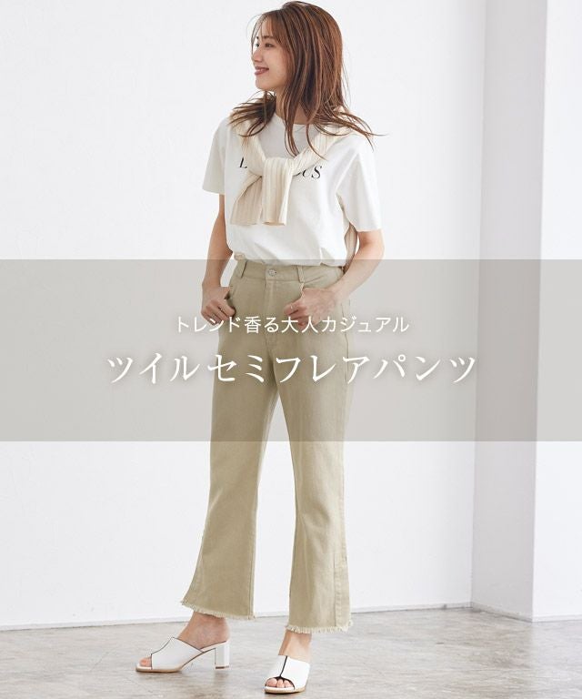 トレンド香る大人カジュアル“ツイルセミフレアパンツ”