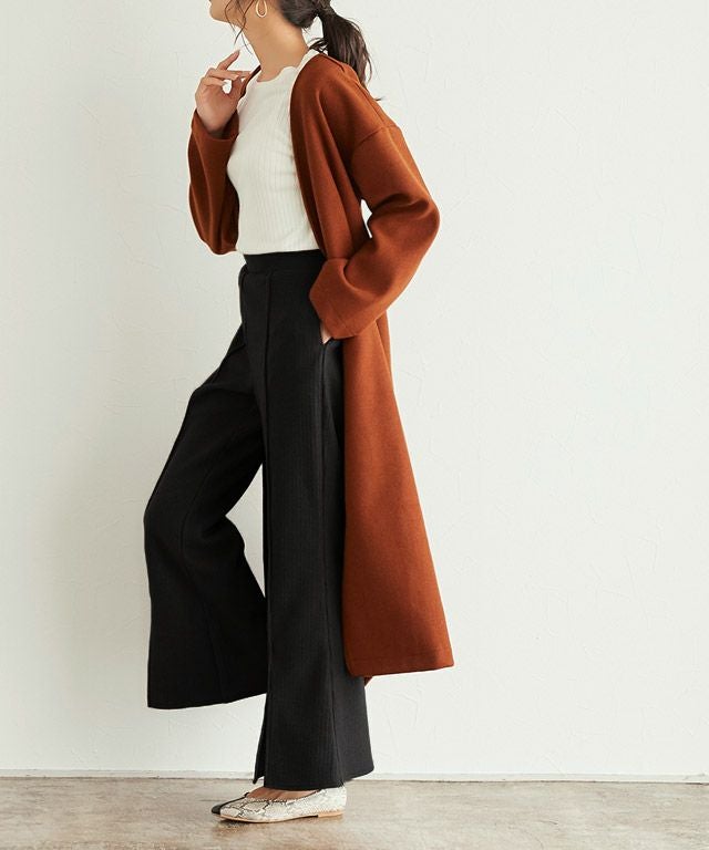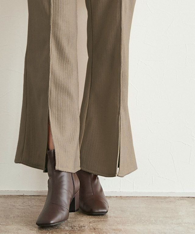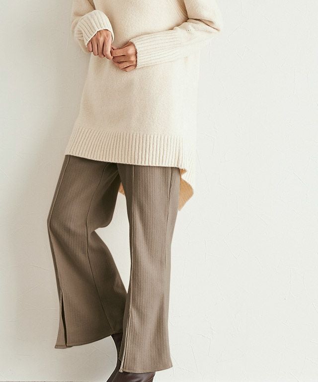 トレンドライクなスタイリングへ"フロントスリットフレアニットパンツ"