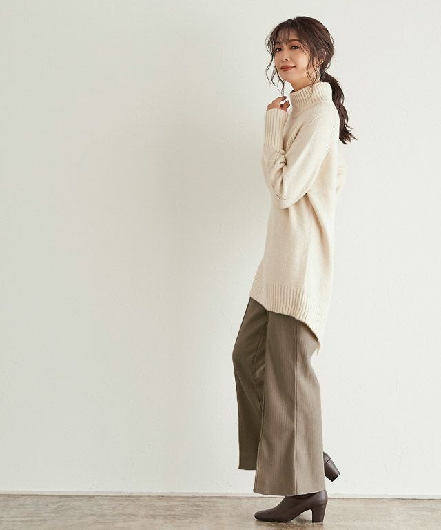 しっかりとした厚手のニットソー素材がシーズンムードを高める一枚。表情のあるリブがスタイリングのアクセントに。柔らかく伸縮性があるので、リラックス感のある穿き心地です。