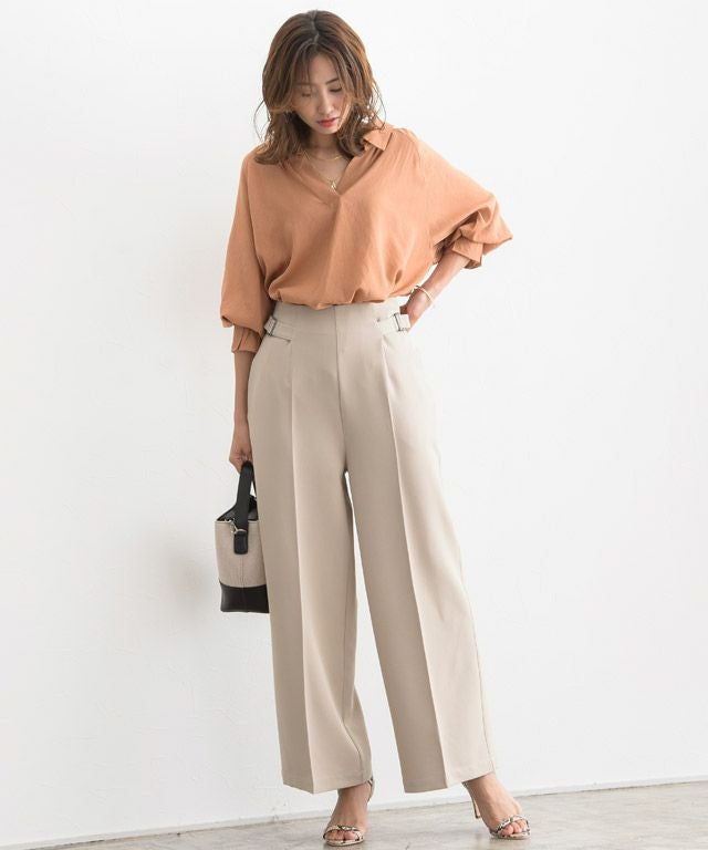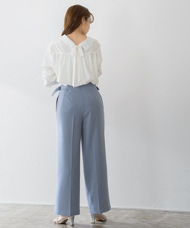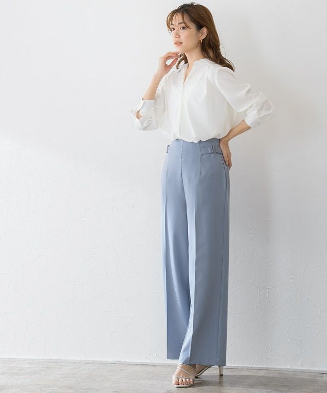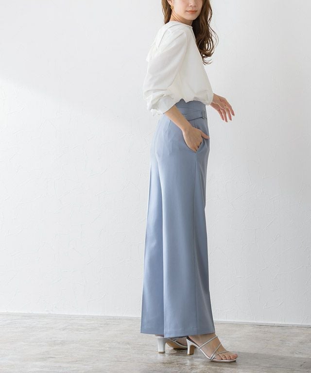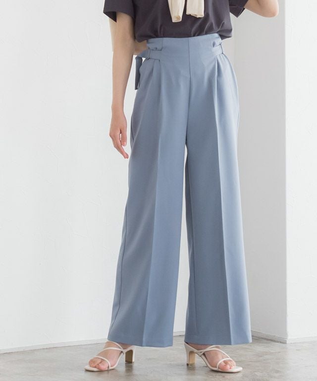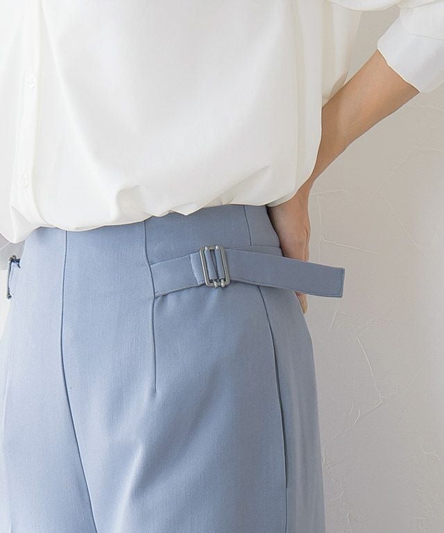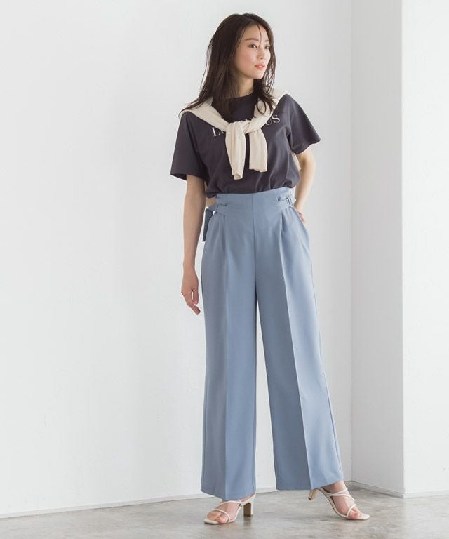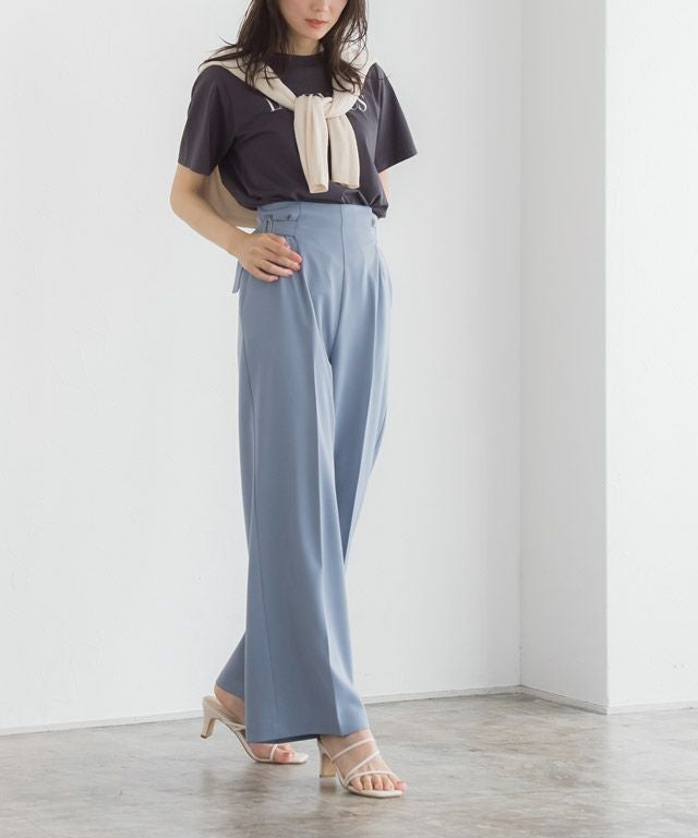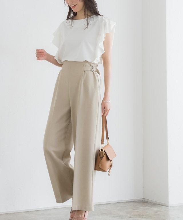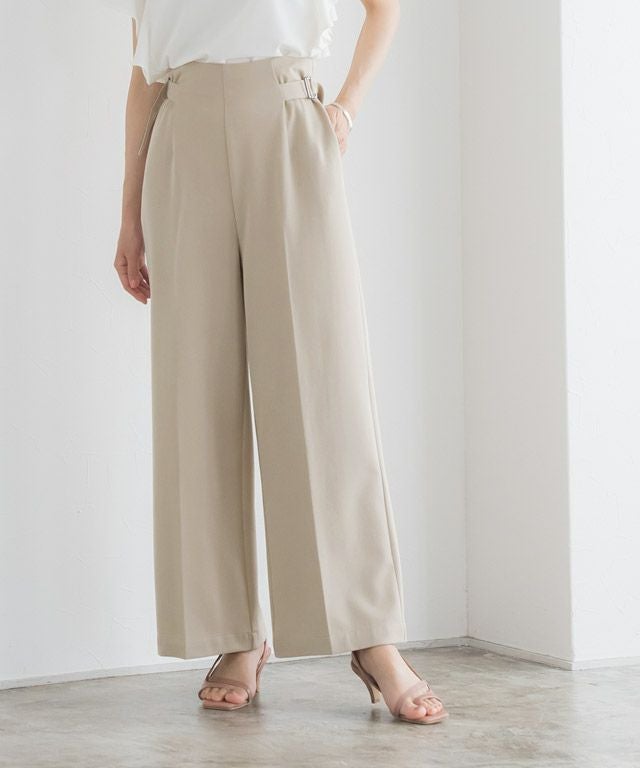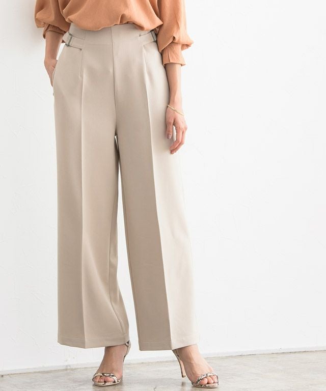 サイドのベルトがインスタイルのアクセントに◎ハイウエストデザインにセンタープレスですっきりし、スタイルアップを叶えてくれて、きちんと感も演出してくれる一枚です。