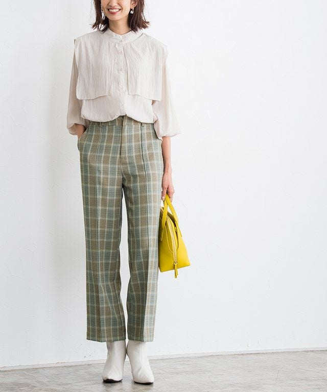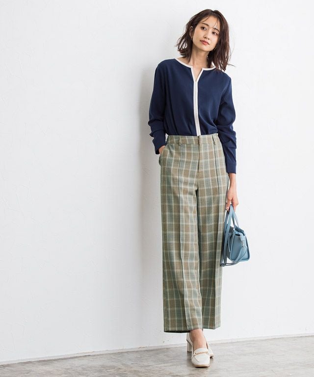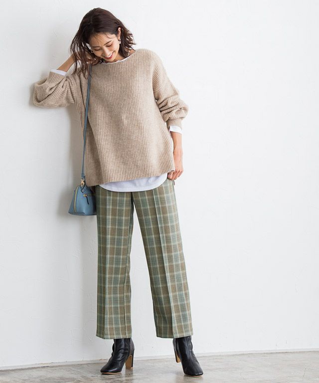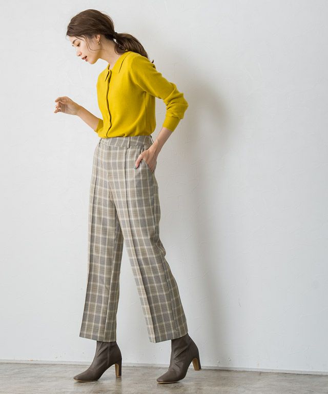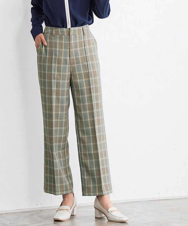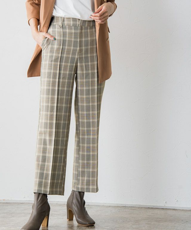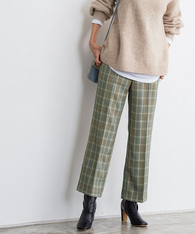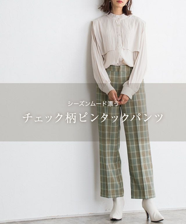いつものコーディネートに取り入れるだけでシーズンムードをプラスしてくれるチェック柄。ボックスシルエットにピンタック加工を施し、きちんとした雰囲気を演出します。脚のラインを拾いにくいところも嬉しいポイントです◎