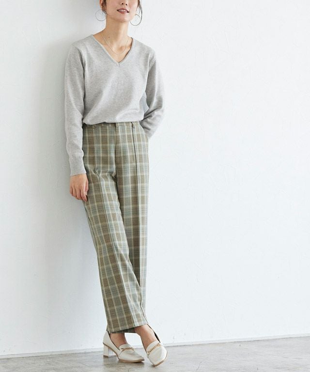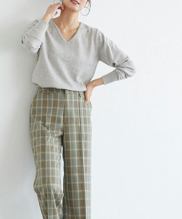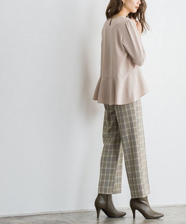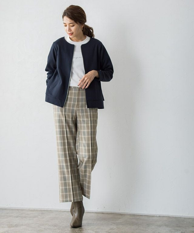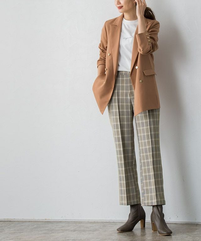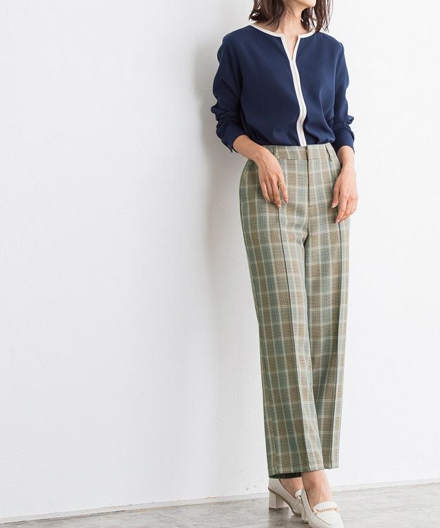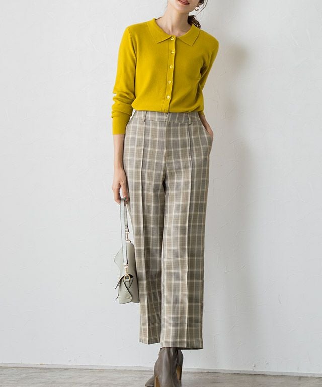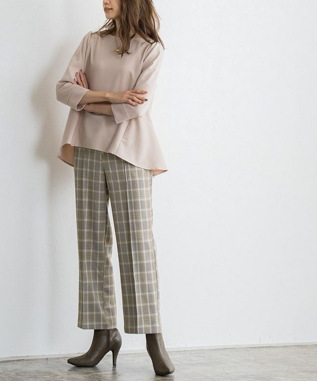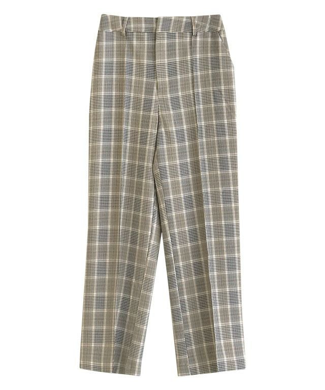 いつものコーディネートに取り入れるだけでシーズンムードをプラスしてくれるチェック柄。ボックスシルエットにピンタック加工を施し、きちんとした雰囲気を演出します。脚のラインを拾いにくいところも嬉しいポイントです◎