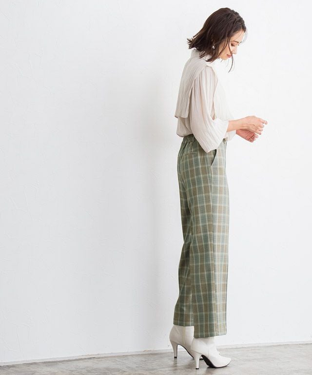 チェック柄ピンタックパンツ