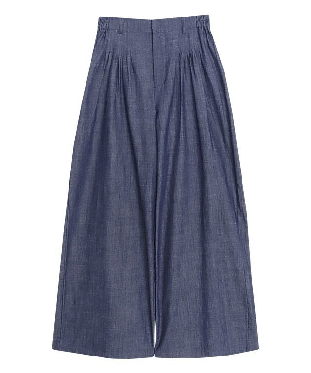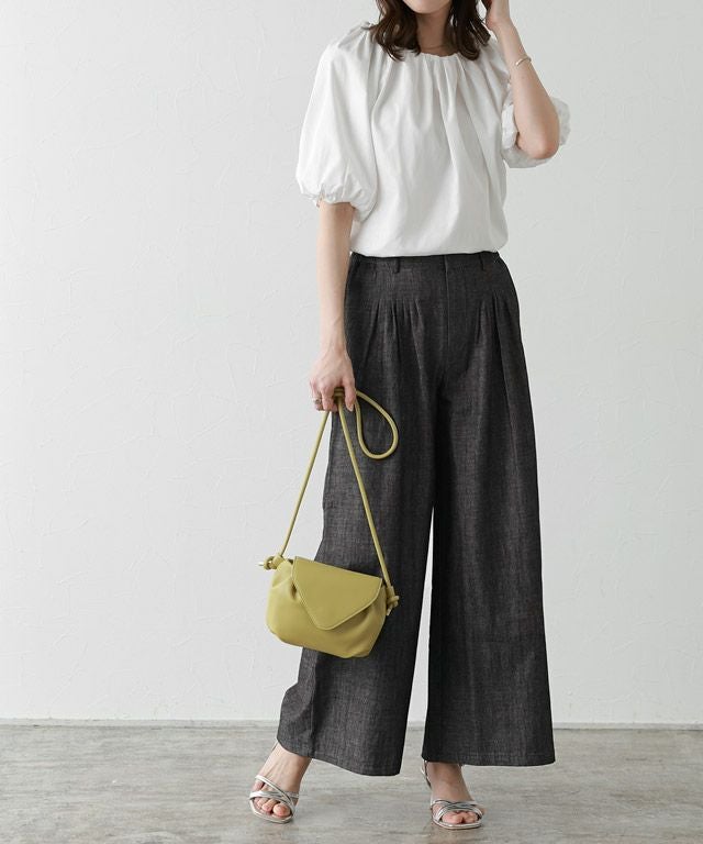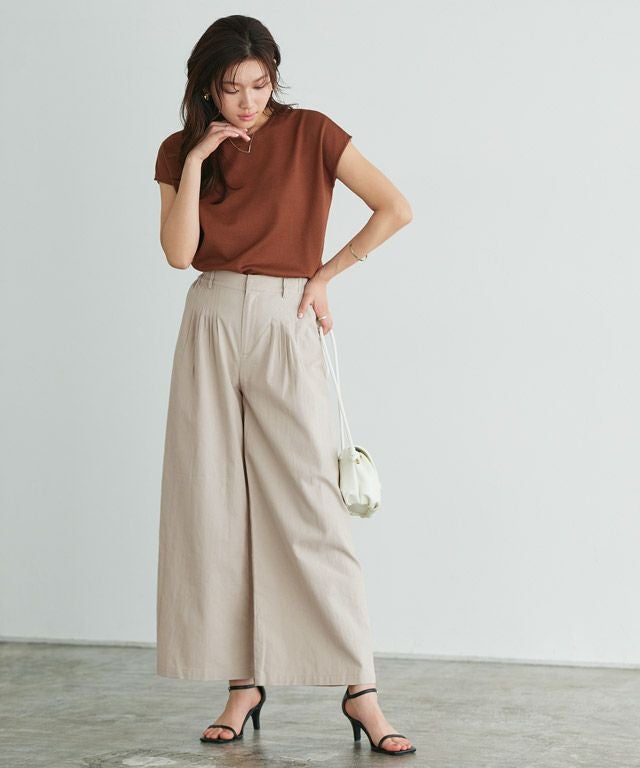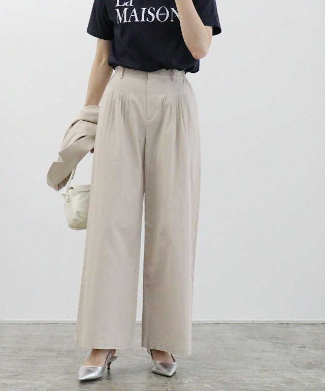 裾に向かってボリュームのあるルーズなワイドシルエットが魅力。ウエストにあしらったタックが腰周りはすっきり見せつつ、脚のラインを拾わない優秀シルエットです。
