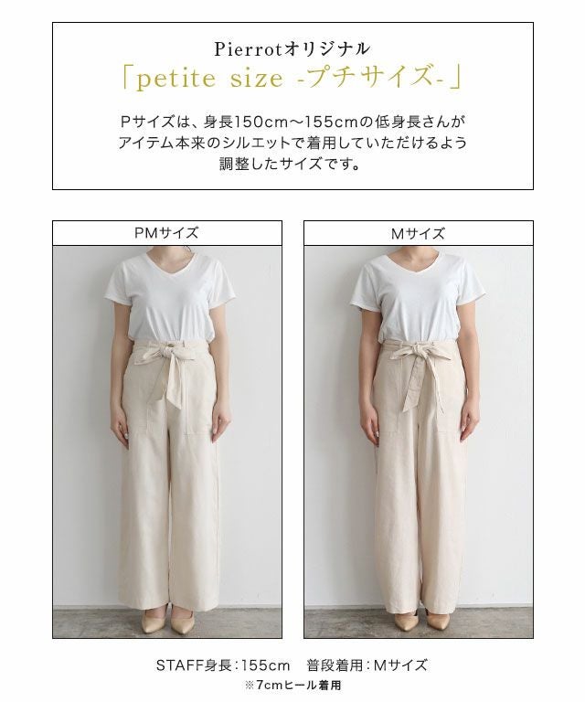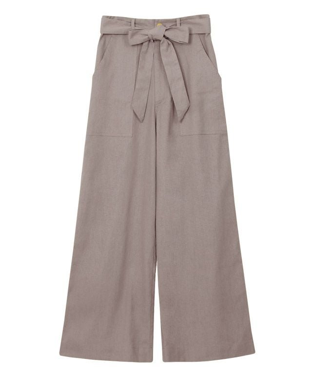 ウエストリボン付き麻混ワイドパンツ 【Pierrot】【スピード配送】