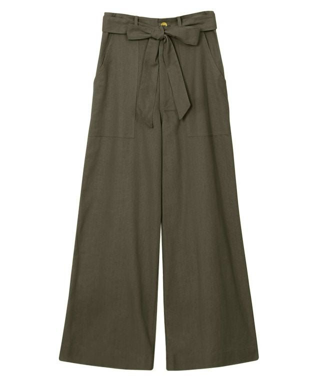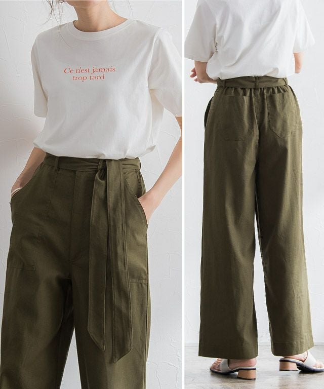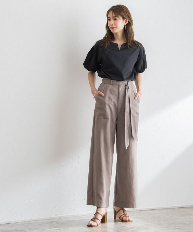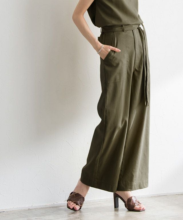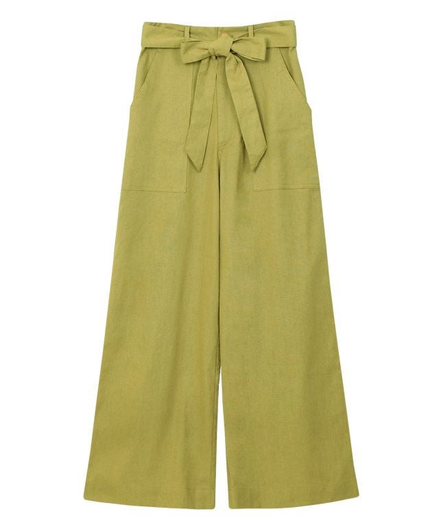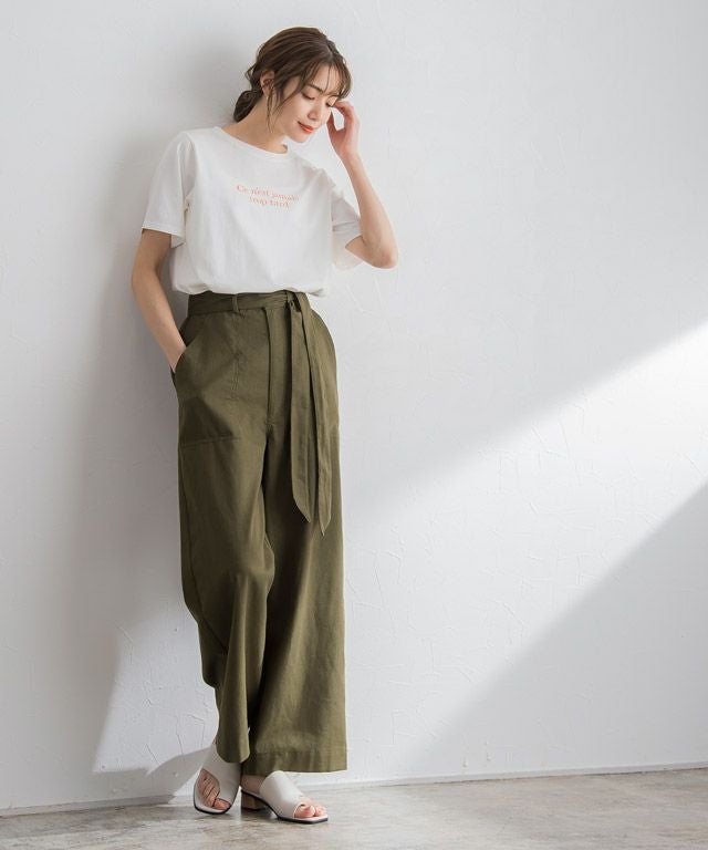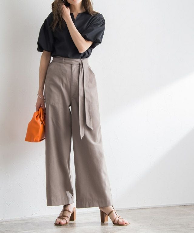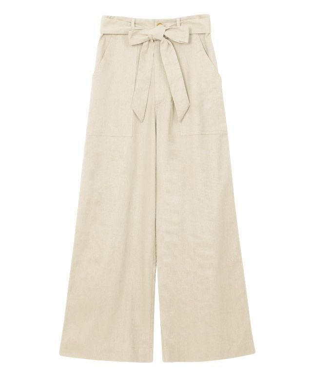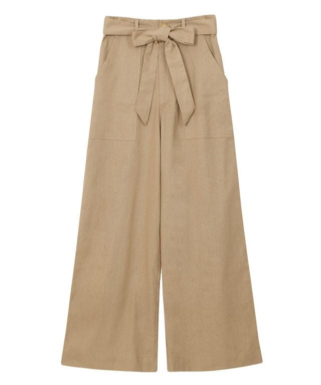 ラフな大人スタイルを叶える“ウエストリボン付き麻混ワイドパンツ”