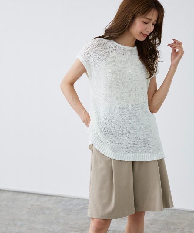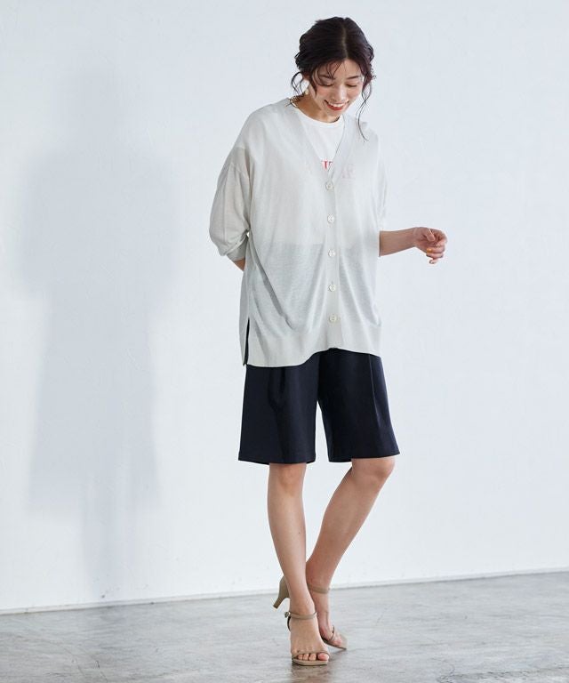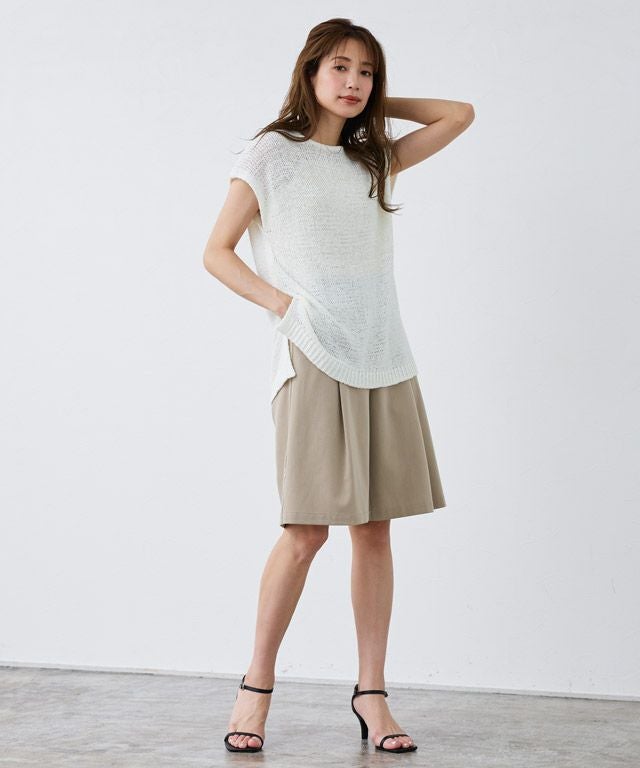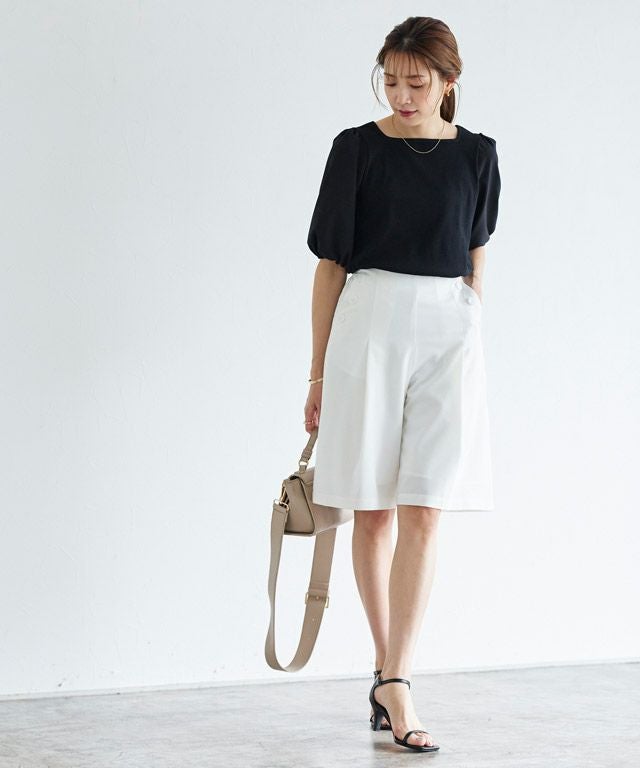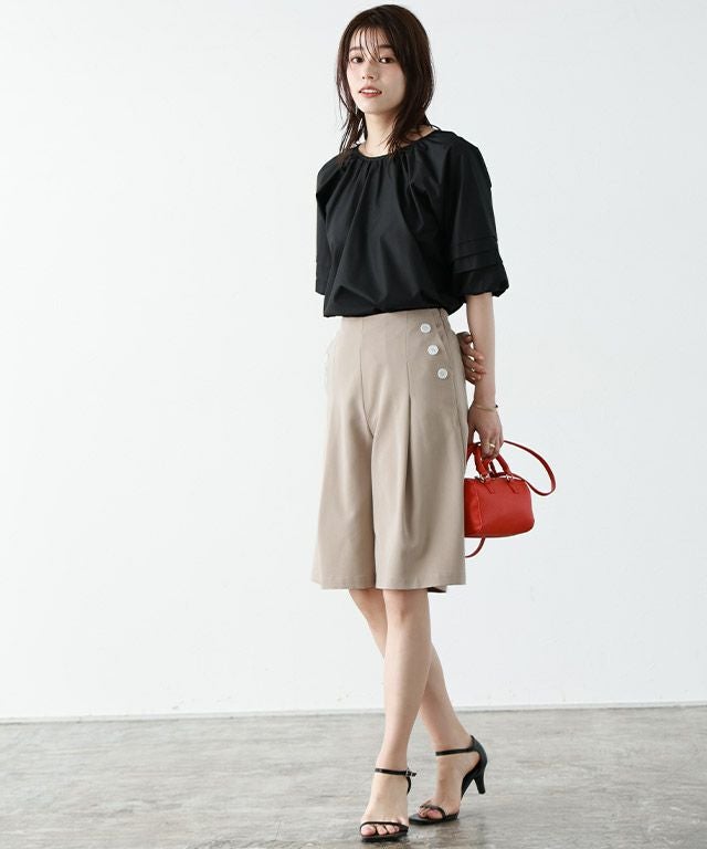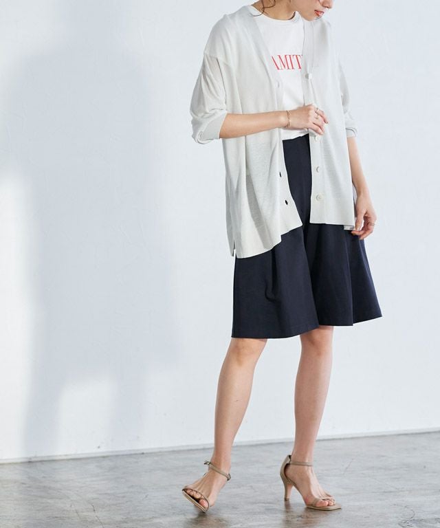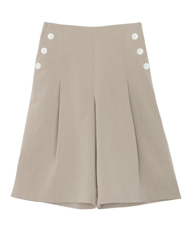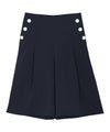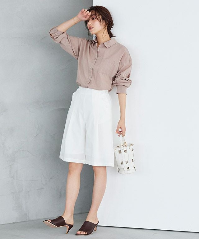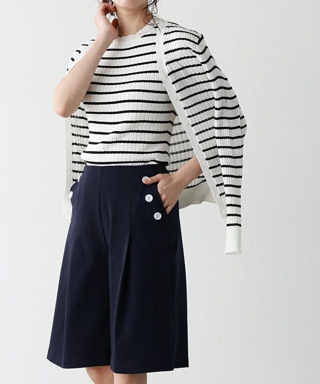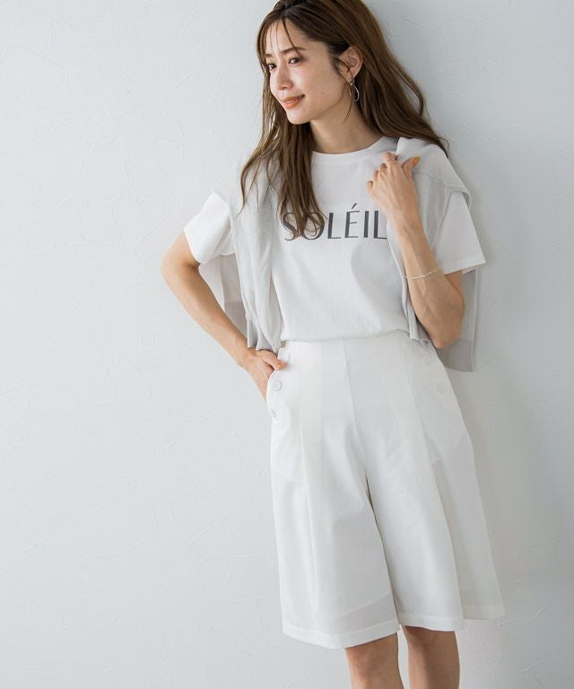 大人のマリンスタイルへ導く“タックハーフマリンパンツ”さらりとした質感と、程良く落ち感のある素材が上品な印象に導きます。マリンディテールのボタンが女性らしさを引き立てるハーフパンツ。深めにとったタックデザインで裾幅にゆとりを持たせることで、脚のラインをさりげなくカバーします。カジュアルさを抑えた長めの丈感が上品で大人っぽく着用できる一枚です。【ブランド】Pierrot(ピエロ)