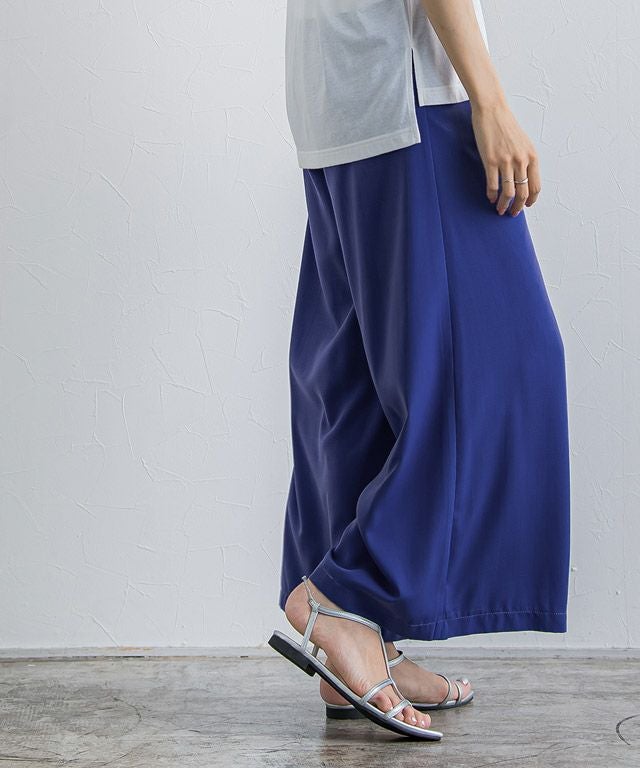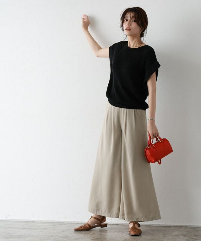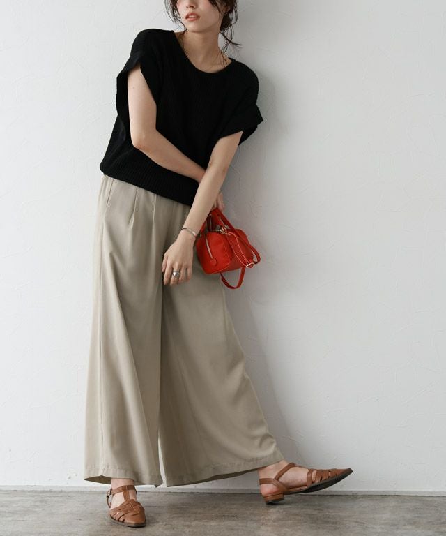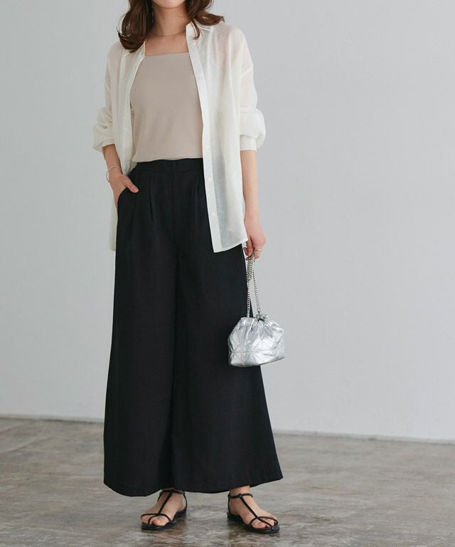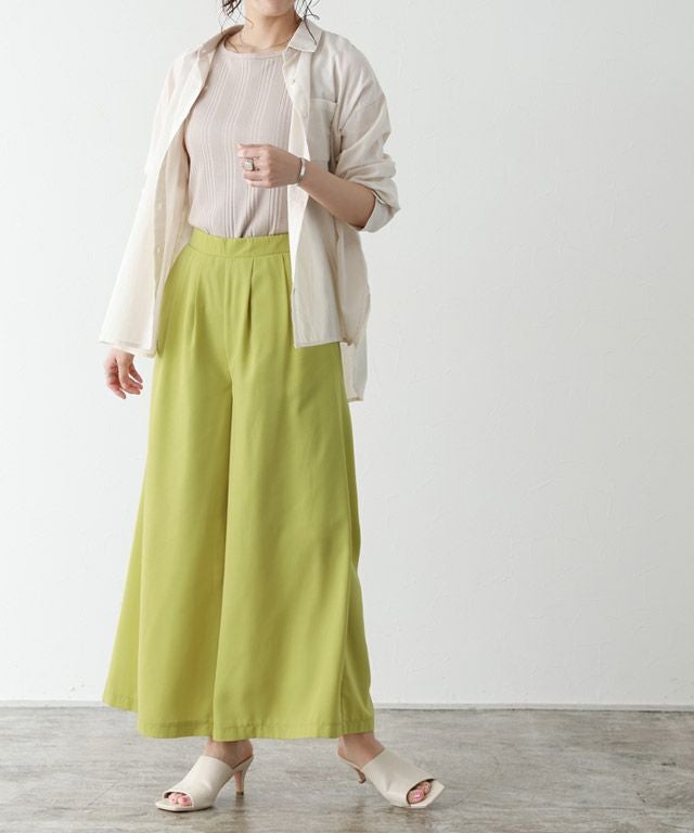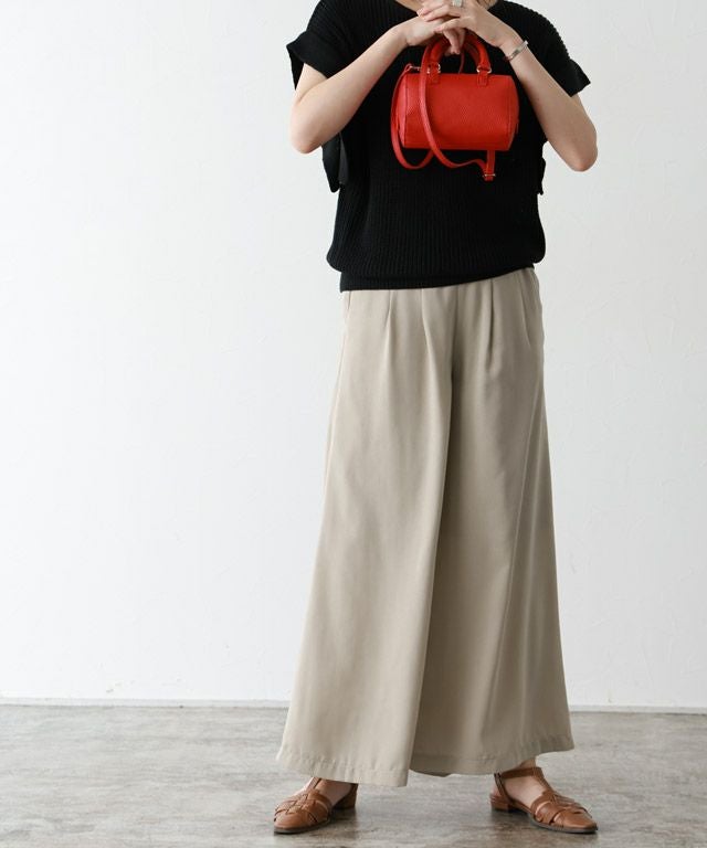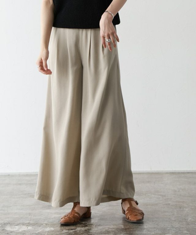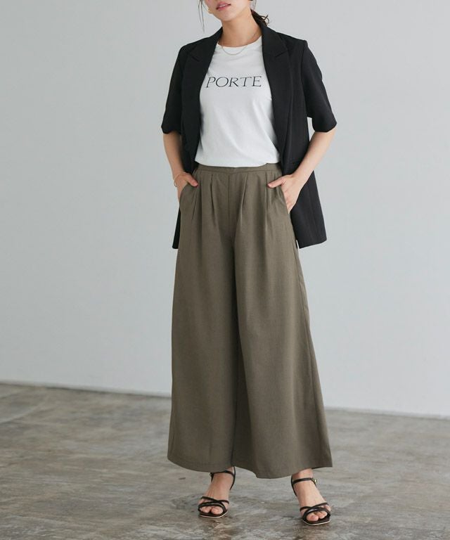 フロントに施したタックとスカート見えするたっぷり取った用尺が、トレンド感がありつつ女性らしい雰囲気に仕上げてくれます。後ろウエストゴムでフィット感があり、ストレスフリーな穿き心地◎合わせるトップス次第で、きれいめにもカジュアルにも着回せる一枚です。