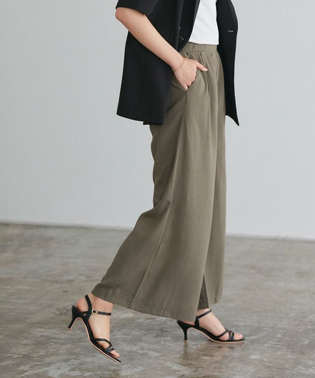 楽な穿き心地なのに女性らしく仕上げてくれる“リネンライクタックパンツ”
