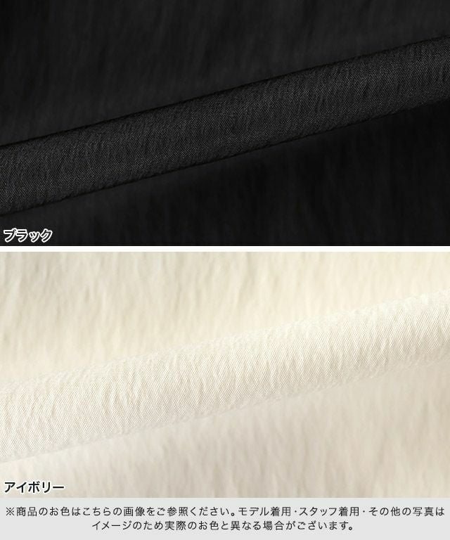 J 着丈は足首下で裾が床に付いてしまう丈感でした。ウエストはゆとりがあり、ヒップにはゆとりがあります。脚周りはゆとりがありました。さらっとしたタフタ素材で程よくハリ感があります。後ろウエストがゴム仕様なので楽に着用できました。