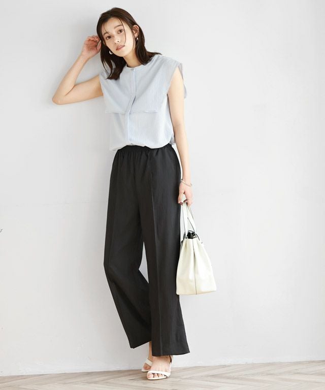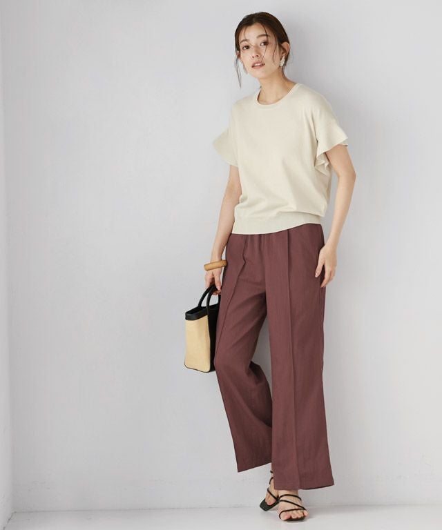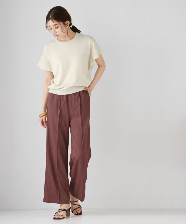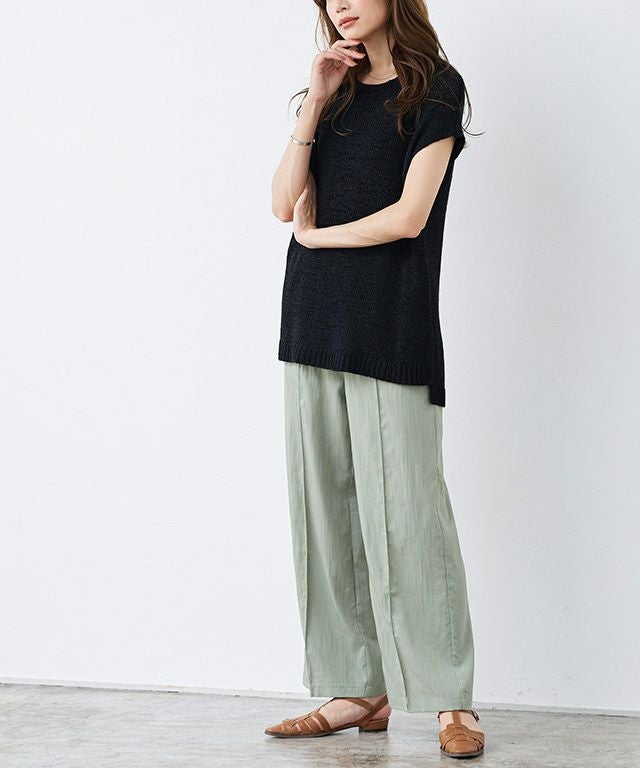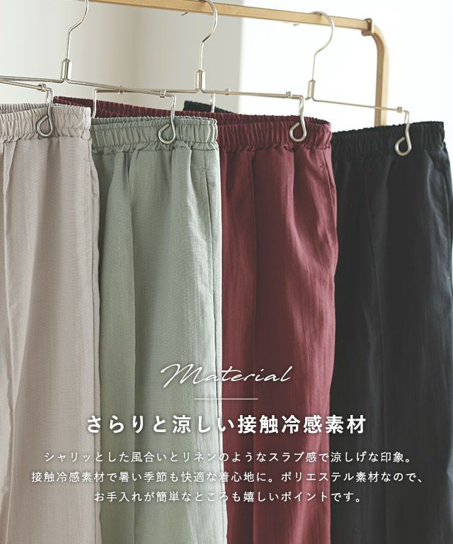 楽に穿けてサラっとひんやり清涼感のある着心地“接触冷感リネンライクワイドパンツ”