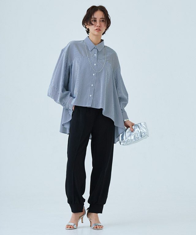 すとんと落ちるストレートシルエットとセンターピンタックのデザインが上品できれいめな印象に。裾にはスリットを施しすっきりとした抜け感をプラスします。ウエストは総ゴム仕様でストレスフリーな着心地。シーズン問わず着用いただけるアイテムです。