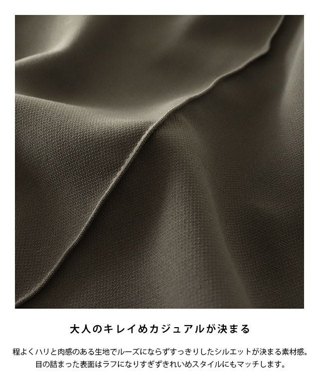 程よくハリと肉感のある生地で、ルーズにならずすっきりしたシルエットが決まる素材感。目の詰まった表面はラフになりすぎずきれいめスタイルにもマッチします。
