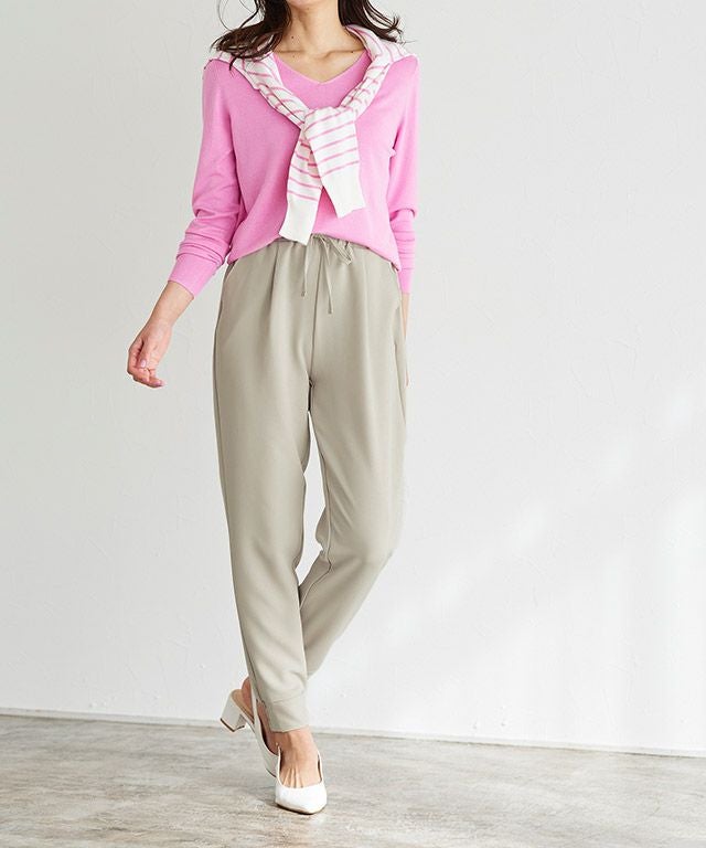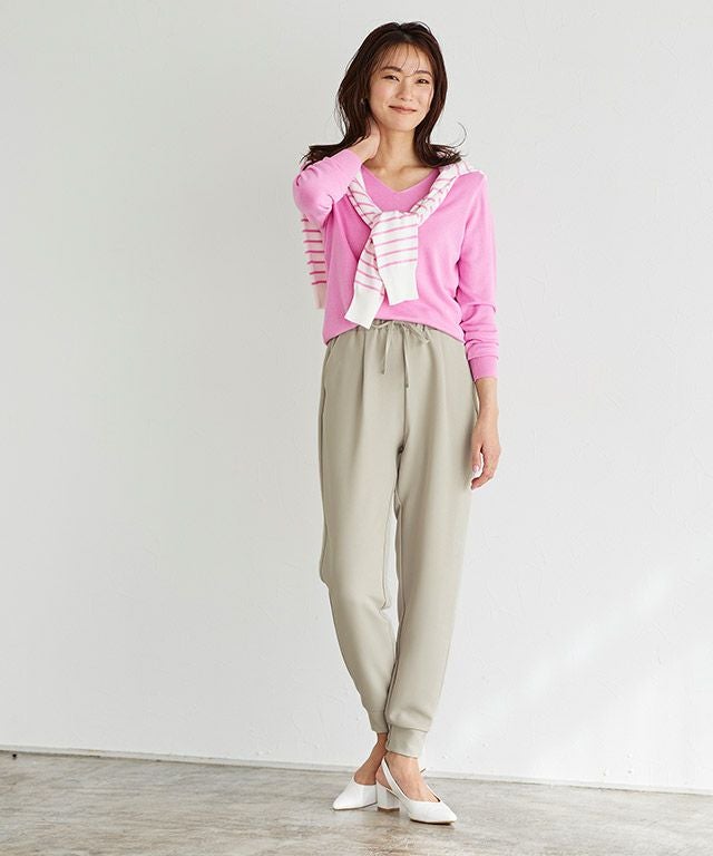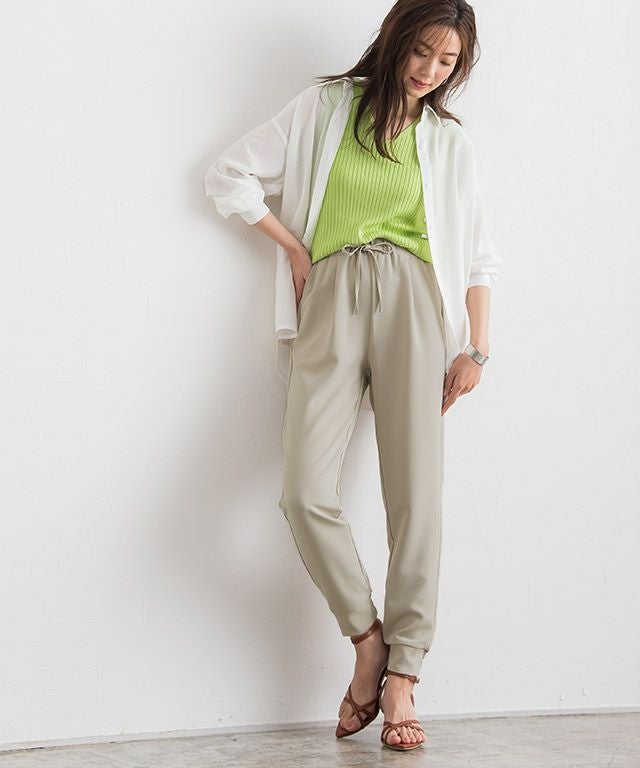 ON/OFF着回せる“テーパードジョガーパンツ” やや落ち感のある素材が、大人な雰囲気へと導き、ON、OFF問わず着用できます。 テーパードシルエットに裾の後ろがゴムになったジョグデザインパンツ。主張しすぎないのでコーディネートに取り入れやすく、チャレンジしやすいところも嬉しいポイントです◎ 【ブランド】 Pierrot(ピエロ)