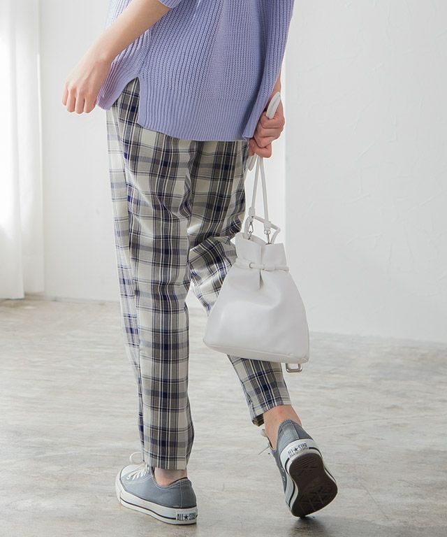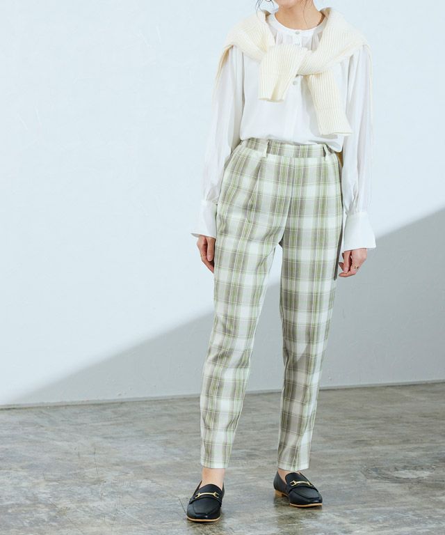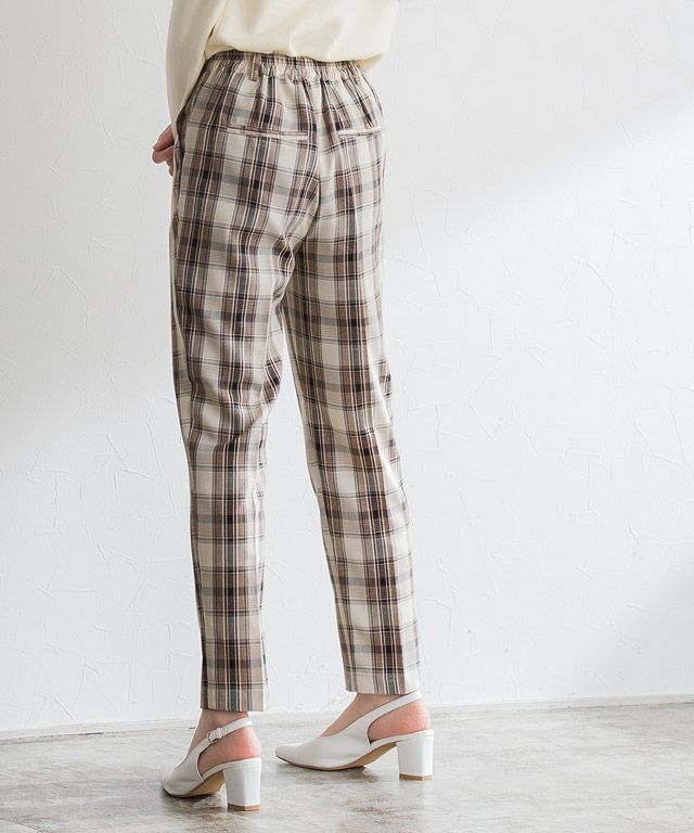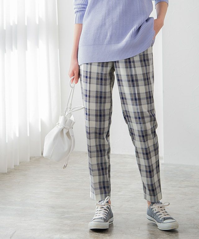 カラーチェックでスタイリングにアクセントを“チェックテーパードパンツ” さらっとした着心地を叶えてくれ、裏地付きなところも嬉しいポイント。サマーチェックならではのカラーも魅力の一つです。 フロントタックとセンタープレスがすっきりとした着こなしへと導き、 裾に向かって細くなるテーパードシルエットがスタイルアップも叶えてくれる一枚です。 【ブランド】 Pierrot(ピエロ)