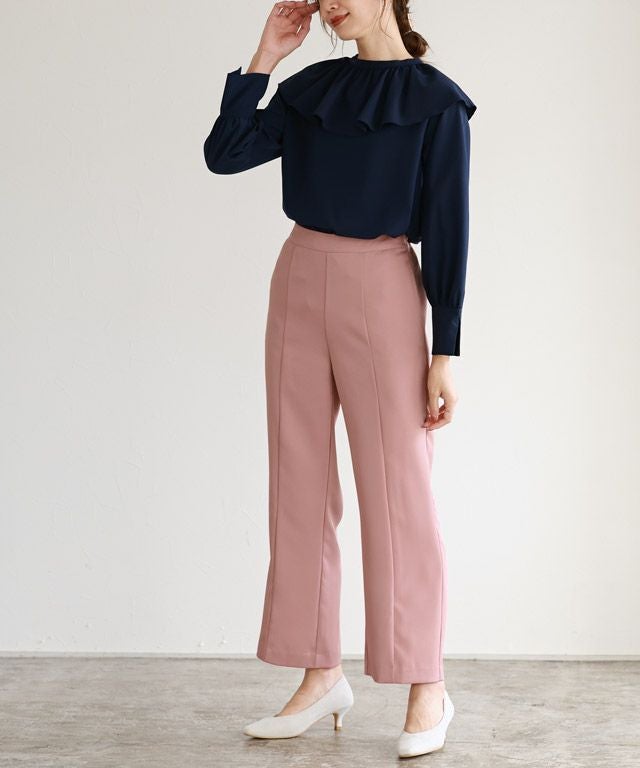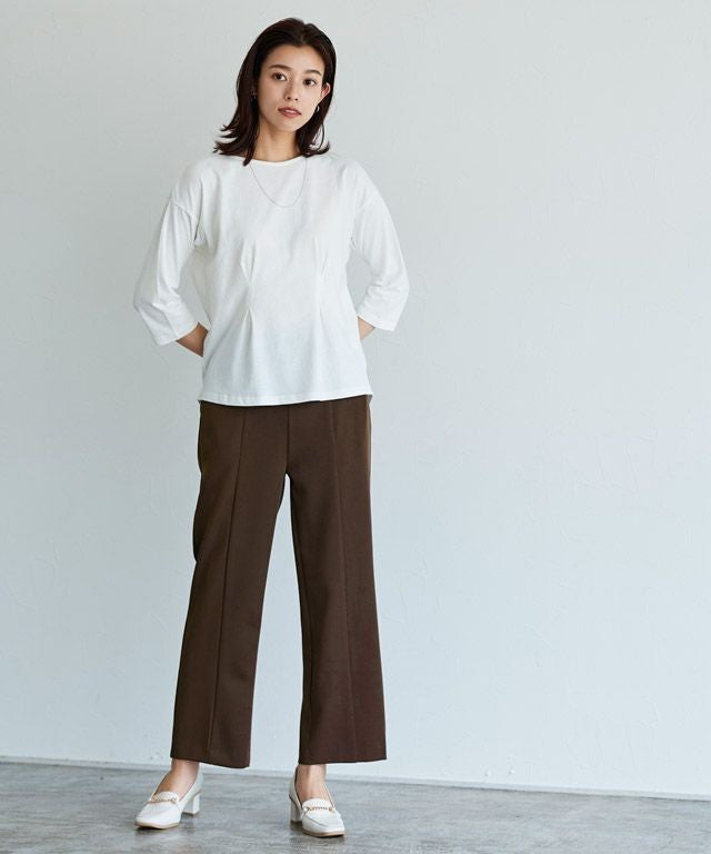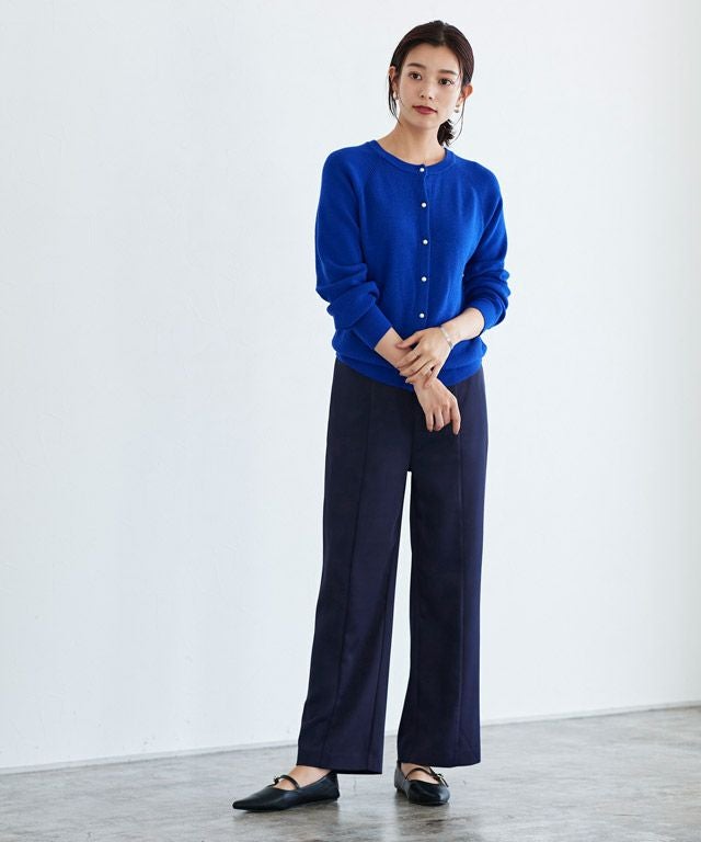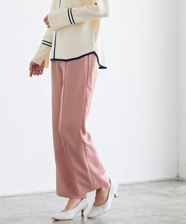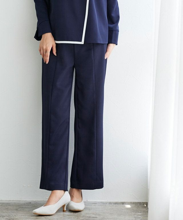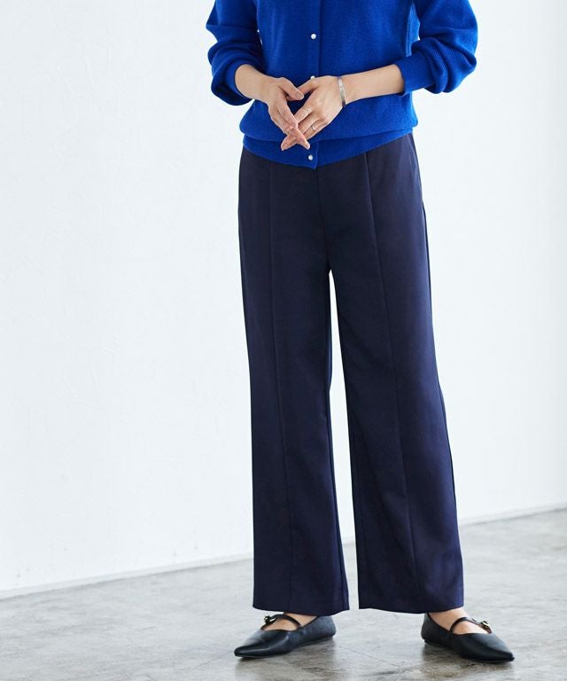 センターシームデザインがスタイルアップを叶え、すっきりとした印象に◎すとんと落ちるストレートシルエットが上品見えし体型を拾わないのでストレスフリーな穿き心地です。