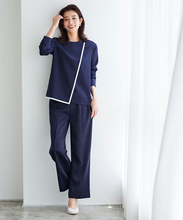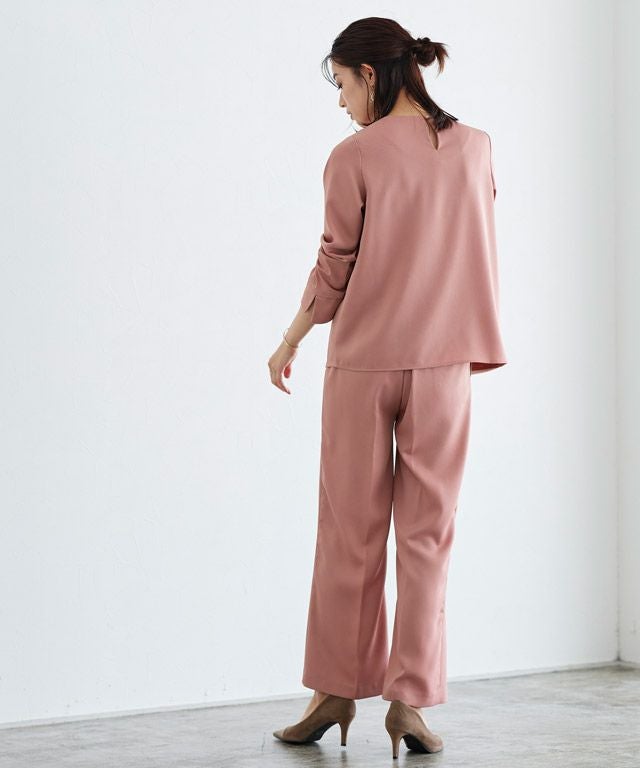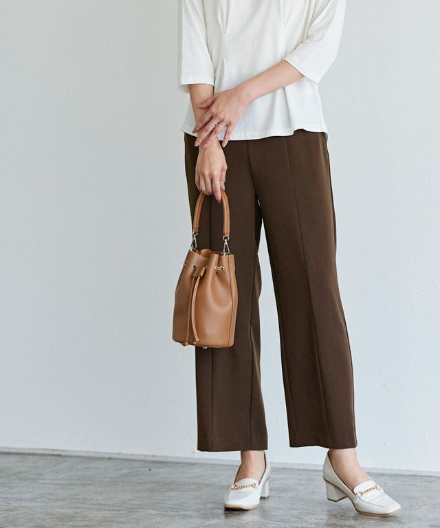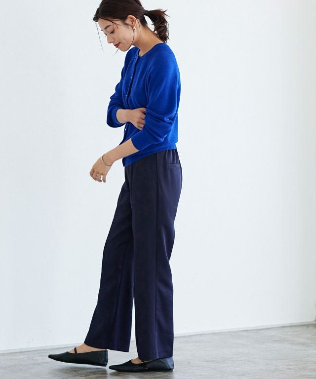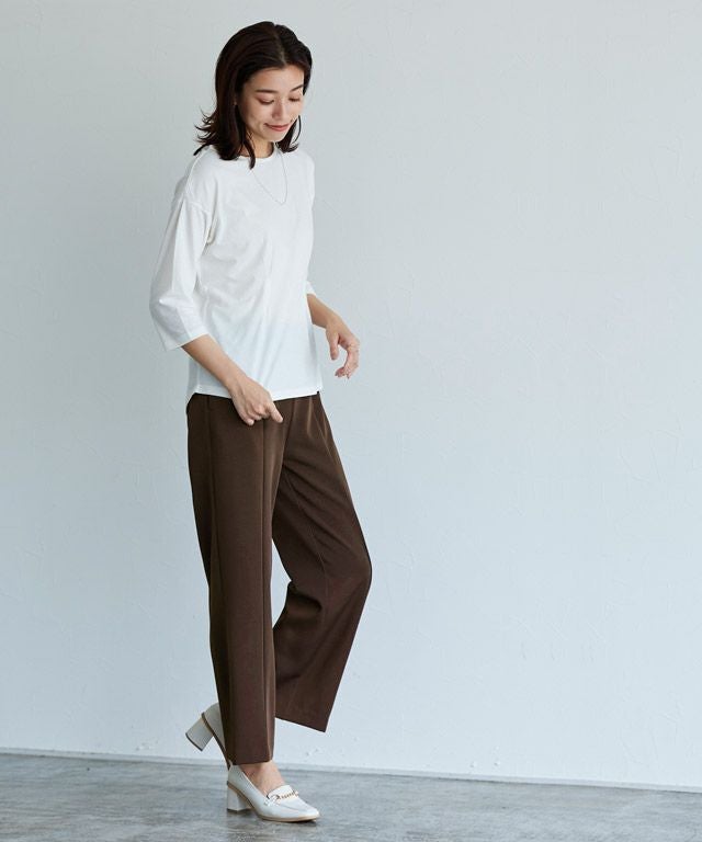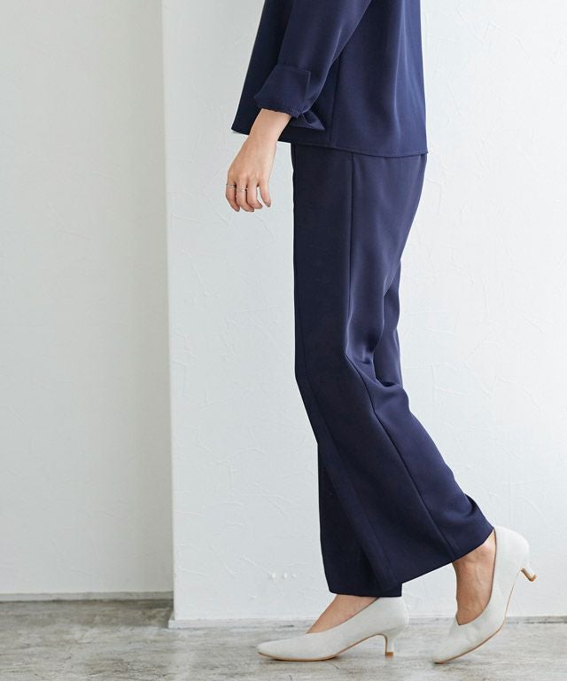 滑らかな肌触りが心地良いパンツ。とろみと落ち感のある上品な質感がワンランク上の着心地へ仕上げます。