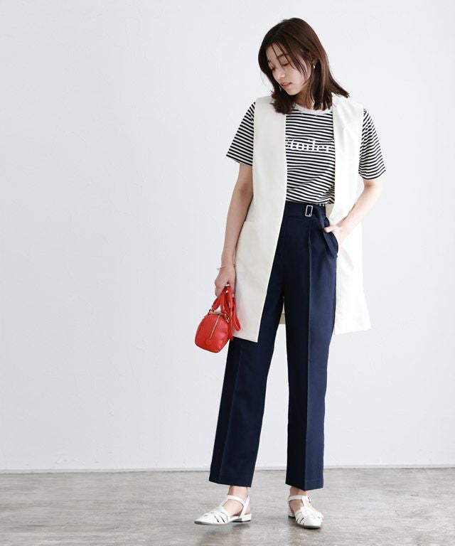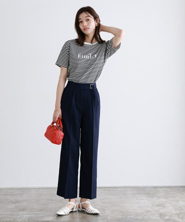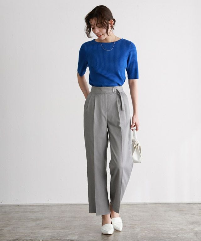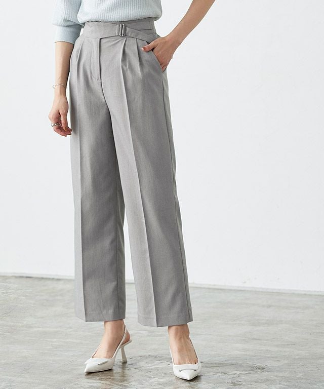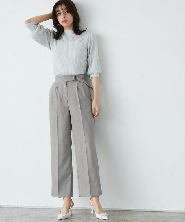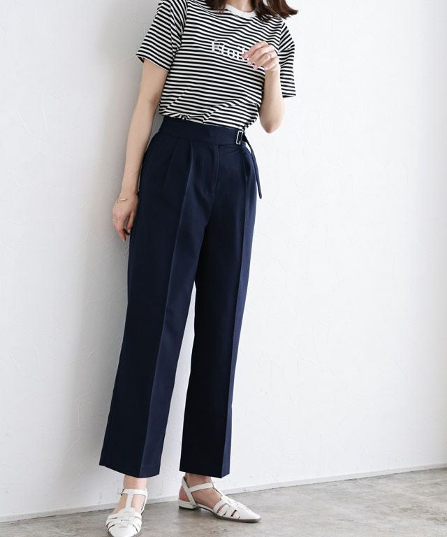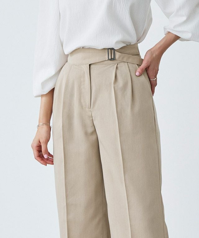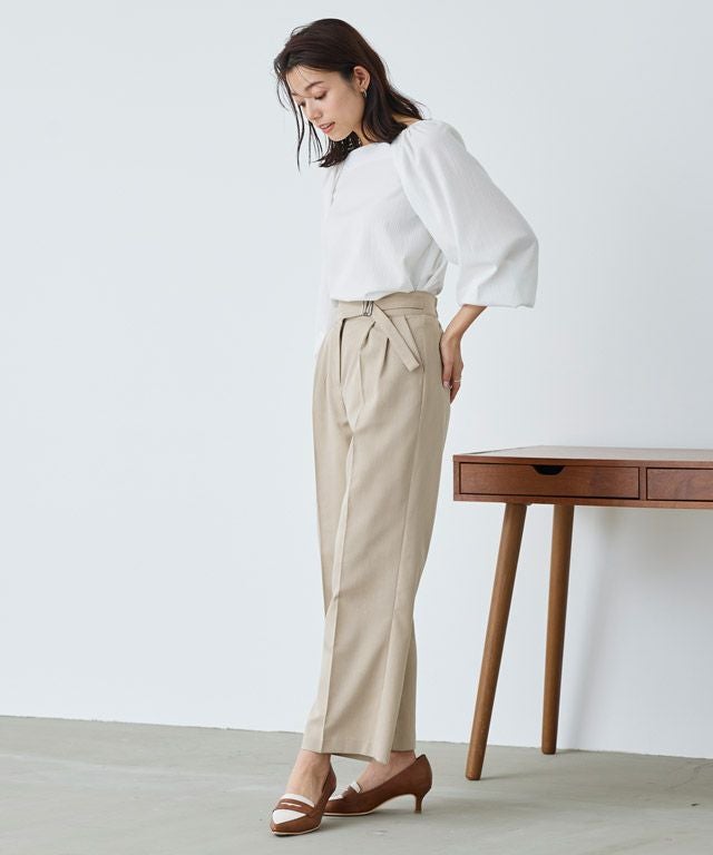 ウエストに施したベルトがアクセントになったデザインパンツ。腰回りにはダブルタックを入れてゆとりを持たせ、上品な印象ながらもこなれた雰囲気に◎ON/OFF着まわせるアイテムです。