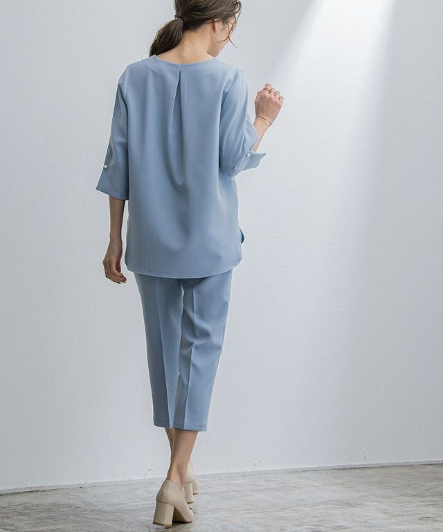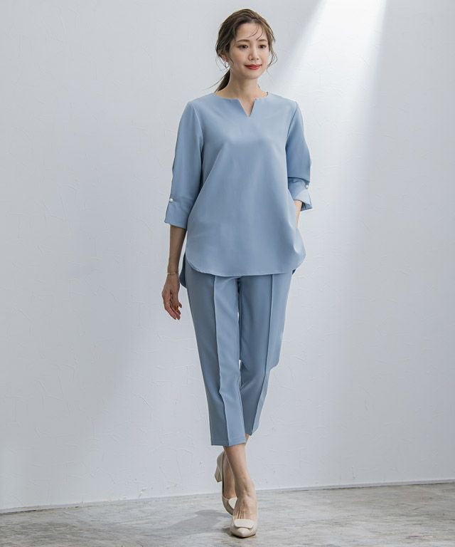デザインは幅広いスタイリングにも合わせやすいようにするため、ベーシックなデザインで仕上げました。美脚効果を演出してくれる、絶妙な丈もこだわりポイント。同素材のブラウスとセットアップでの着用もおすすめです。