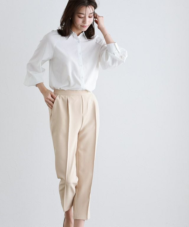 滑らかな肌触りで ストレッチ性があり、ストレスフリーな穿き心地の素材。シワになりにくいのでお手入れも簡単です。