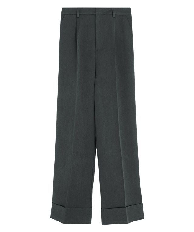 裾がダブルになったデザインパンツ。アクセントをプラスし、いつものコーデに取り入れるだけでワンランク上のスタイリングへ導きます◎脚のラインを拾いにくいストレートシルエットも嬉しいポイント。タックとセンタープレスが、すっきりとした印象に仕上げてくれます。