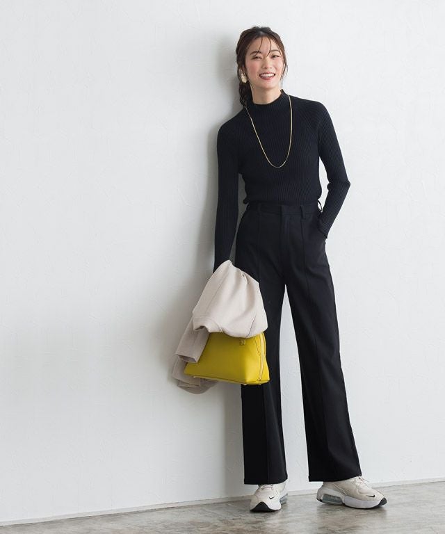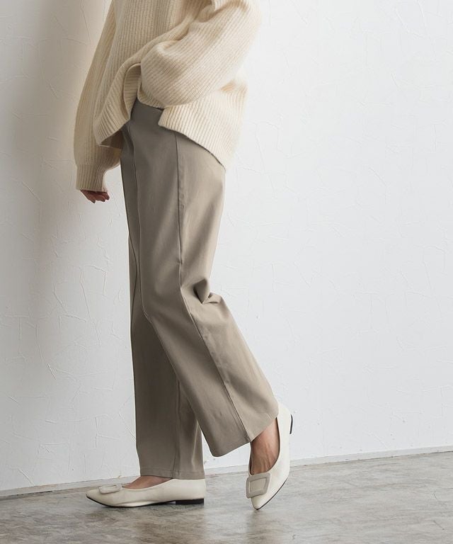 程良くハリ感のある素材がきれい見えを叶え、内側には起毛加工を施しひんやり感を感じない暖かな穿き心地。微起毛でシルエットに響くことなく、普段使いしやすい素材です。