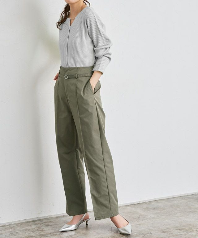 【アウトレットSALE!】ベルテッドエステルツイルストレートパンツ