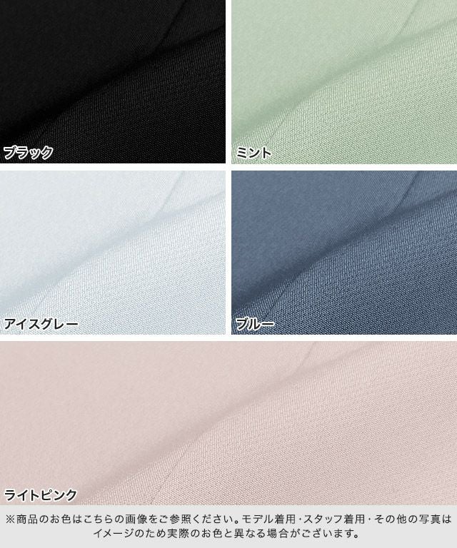 厚手のジョーゼット素材を使用しており、滑らかな肌触りと程よい落ち感が魅力的で、きちんとした印象をプラスします。