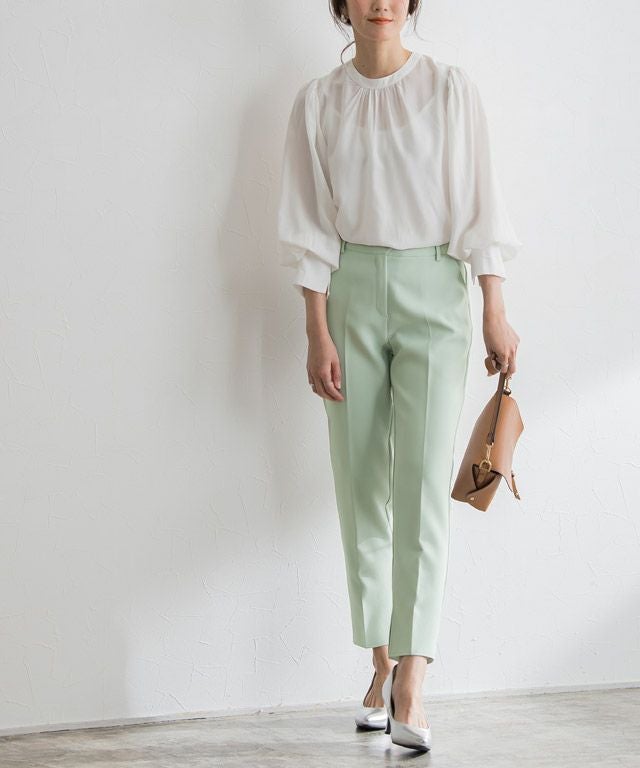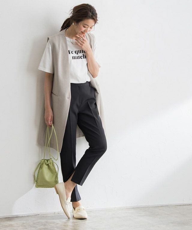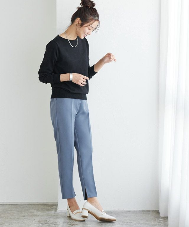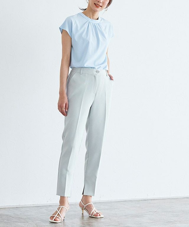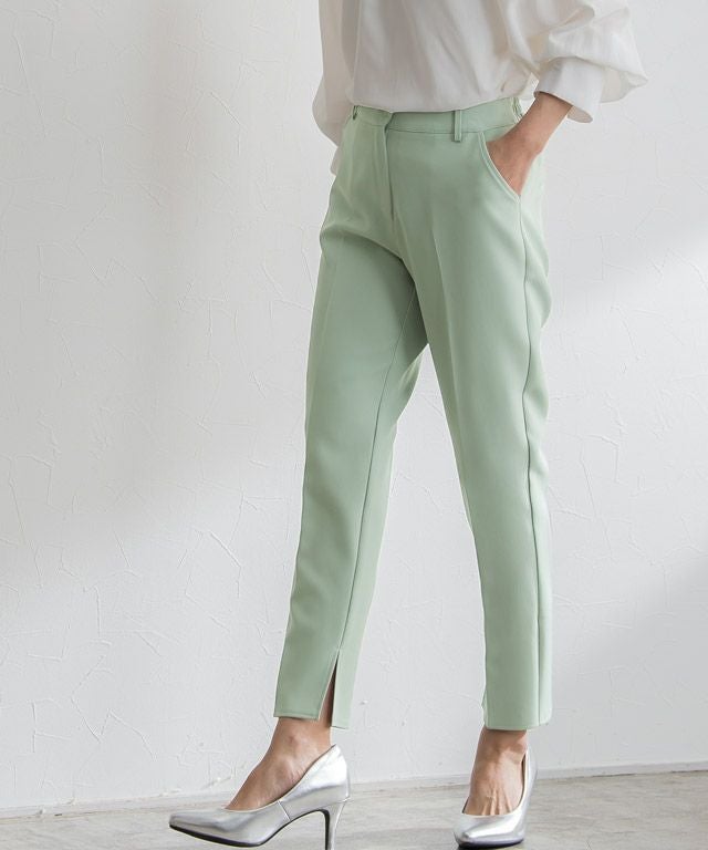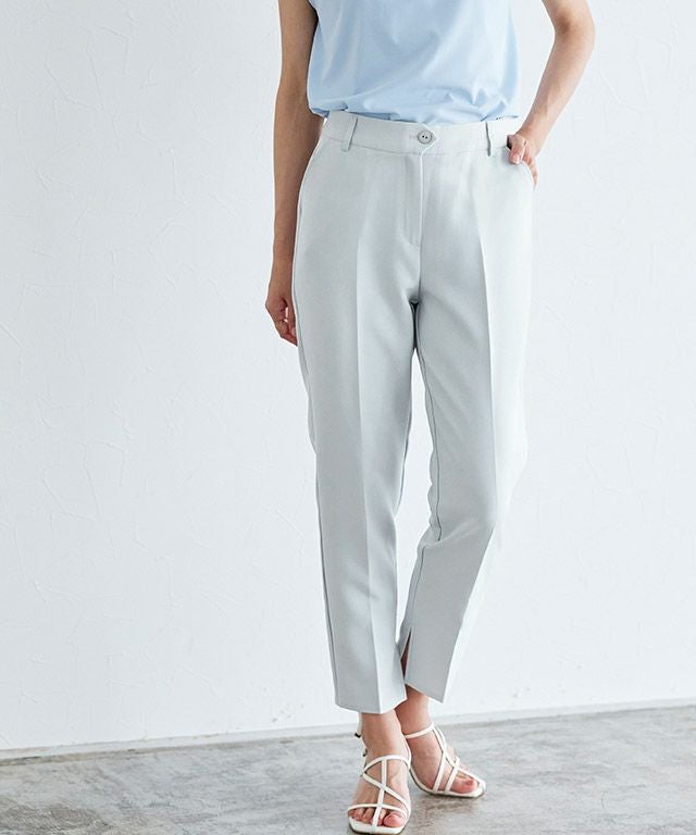 ノータックでウエスト周りをすっきりとさせ、センタープレスを施すことでスタイルアップ効果も◎すとんと落ちるシルエットと、シンプルながらも裾スリットデザインが大人の抜け感を演出します。