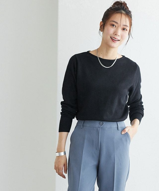 また、ニット製品は生産の過程上「生地を織る際の糸の継ぎ目」繊維の「混紡」、プレス加工、製品洗い加工によって形やサイズ(5cm前後)に誤差が生じる場合がございますが品質上の問題はございません。