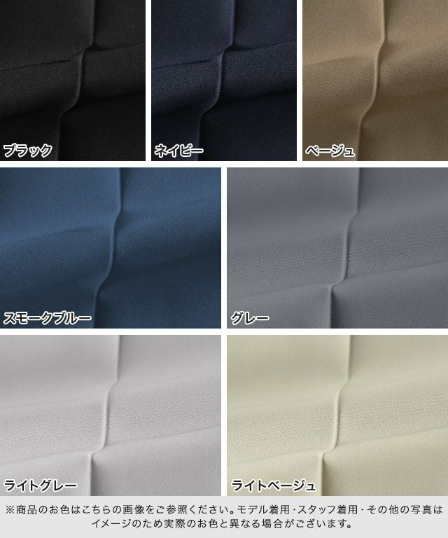 サラッとした肌触りで通年着回しやすいポリエステル素材。ポリウレタン混で伸縮性があり、楽な穿き心地です。シワになりにくく、お手入れが簡単なところも嬉しいポイント。