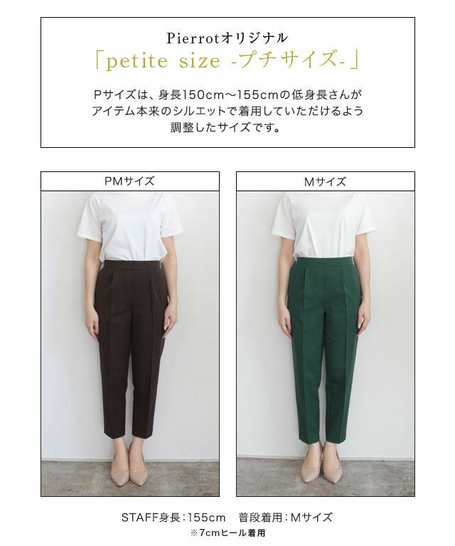 腰回りの体型カバーをしつつ、裾に向かって細くなったシルエットがきれい見えするパンツ。ウエストは着脱しやすいゴム仕様に仕上げました。ON/OFF問わず着回せるアイテムです。