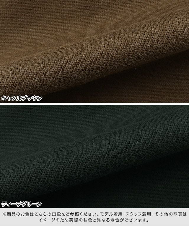C 着丈は足首が隠れる丈感でした。ウエストやヒップはややゆとりがあります。太もも周りはゆったりとしていました。サイドボタンがアクセントになります◎柔らかく、やや起毛感のある生地です。