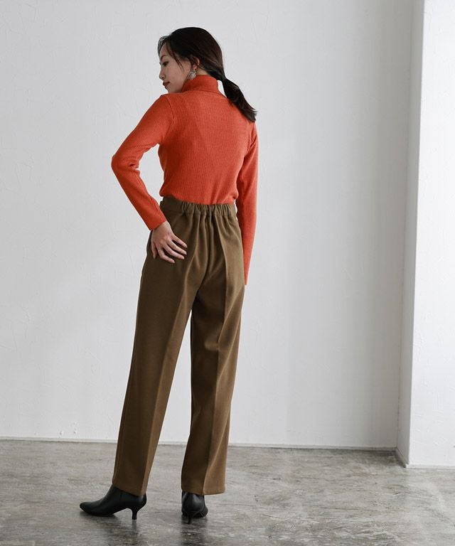 センタープレス加工を施し、ややハイウエストに仕上げることで脚長効果抜群◎サイドに施したボタンがアクセントになり、シンプルながらもこだわりのあるデザインに仕上げました。
