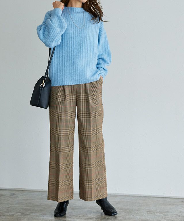 L 着丈は足首上の丈感でした。ウエストは程よくゆとりがあり、ヒップには程よいゆとりがあります。脚周りはゆとりがありました。トレンド感のあるチェック柄がコーデにアクセントを加えてくれます。