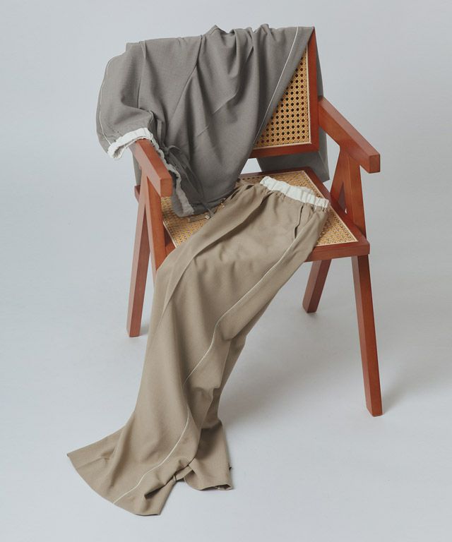 リネンライクな質感がシーズン感を演出し、見た目にも涼しげな印象に。程良い落ち感が美しいドレープを生み、さらっとした肌触りで快適な着心地の素材です。
