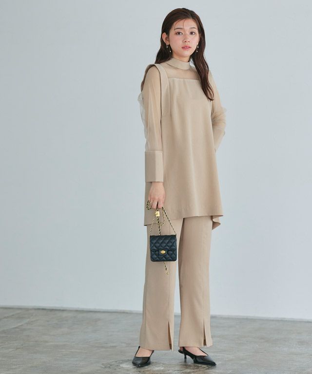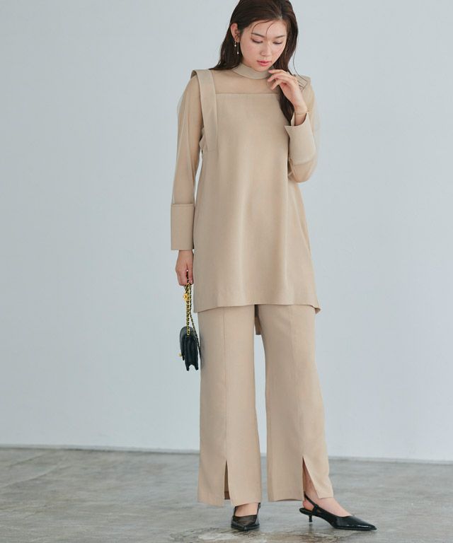 大人の抜け感をプラスする“デコルテシースルーチュニックセットアップ”