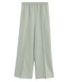センターラインに洗濯しても取れにくいピンタックを施しているので、ゆるっと楽な着心地ながらきれいめなスタイルに見せてくれます。ウエストは総ゴム仕様でラクな穿き心地。