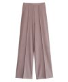 H着丈は足首下で長く、ヒールを履いても裾が床に付く丈感でした。ウエストは後ろがゴムになっているので楽な着用感です。脚のラインを拾いにくいシルエットでした。しっかりとした生地です。