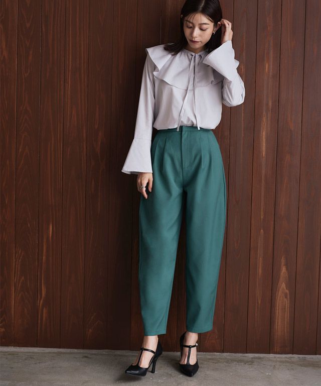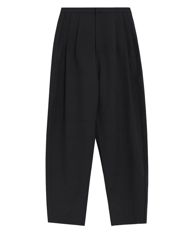 ウエストのタックと太ももにゆとりをもたせ、裾にかけてほんのりと細くしたシルエットが特徴のデザイン。いつものスタイリングに合わせるだけで旬な雰囲気とこなれ感を演出してくれる優秀パンツ。すっきりと見えるので、デイリーの着回しに取り入れたいアイテムです。