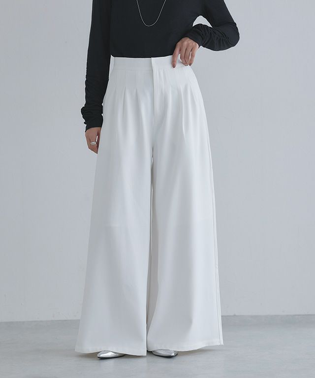 ずるっと感が今っぽい"タックデザインワイドパンツ"