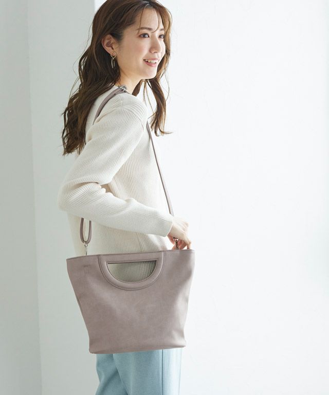 無駄なディテールは省き、ラウンドのハンドルがスタイリングのアクセントになり、こなれた雰囲気を醸し出してくれます。取り外し可能なショルダー付きなのでシーンや気分によって変えられるのも嬉しいポイント◎