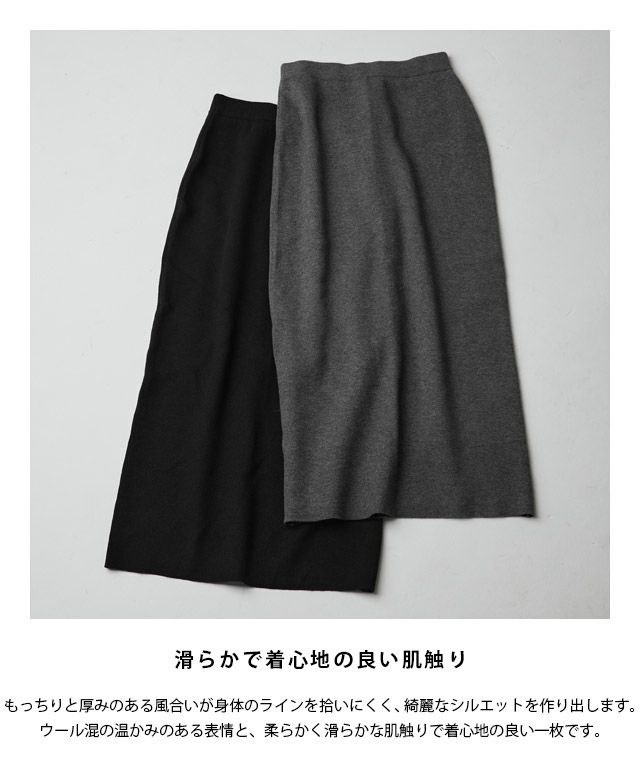 すとんとしたストレートなシルエットでどんなトップスともマッチしやすいニットスカート。スリットデザインが足さばきもしやすくバックスタイルに抜け感を加えます。ウエスト総ゴムでストレスフリーな着心地も魅力です。