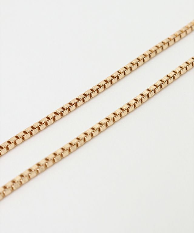 シーズンレスに着用できるようなデザイン。チェーンはベネチアンデザインでアクセントになる1本です。