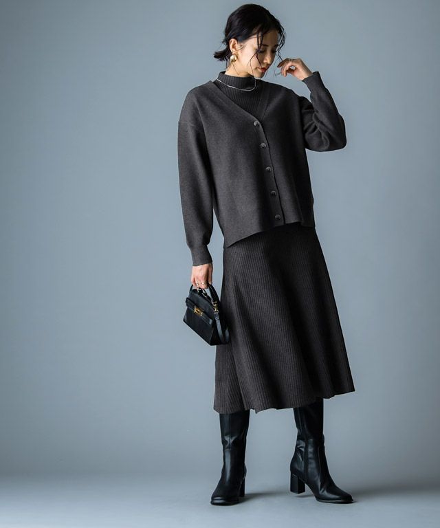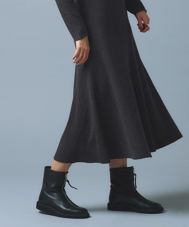程よく厚みのあるしっかりとした素材感が美しいシルエットを作り出します。リブ編みにすることでシンプルながらも表情のある一枚に。ウール混で温かみのある風合いも魅力の一つです。