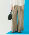 大きくとったインタックデザインが目を惹くワイドパンツ。ボリューム感がありながらも、ウエスト周りはすっきりと見せ、ヒップラインから筒状に広がったデザインがすっきりとした印象へと導きます。脚のラインを拾いにくいところも魅力の一つです。