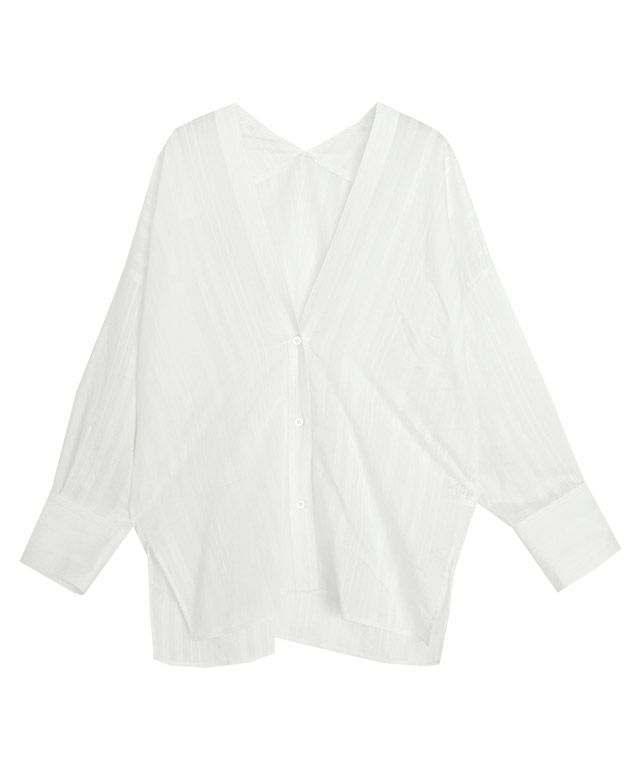 ゆったりとしたオーバーシルエットの中にざっくりと開いたVネックがポイントになったデザイン。アクセントの効いたワイドカフスと、サイドスリットで抜け感溢れる一枚です。羽織としても着まわせるアイテム。